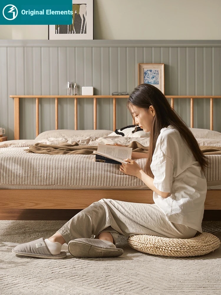 "Scandinavian Oak Solid Wood Bed – Modern Minimalist Windsor Style for Small Spaces, Perfect for Your Bedroom – Durable and Elegant Double Bed"