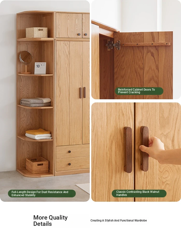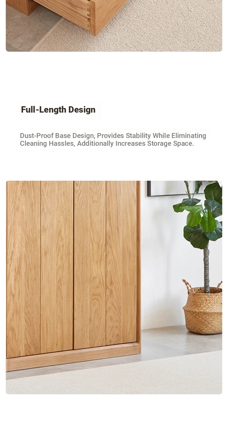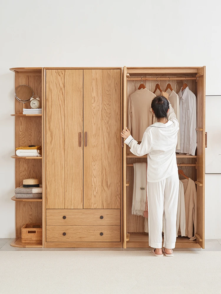 Sleek Scandinavian Solid Wood Wardrobe - Modern Minimalist Oak Closet for Bedroom Storage & Clothes Hanging Solution