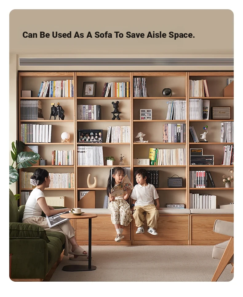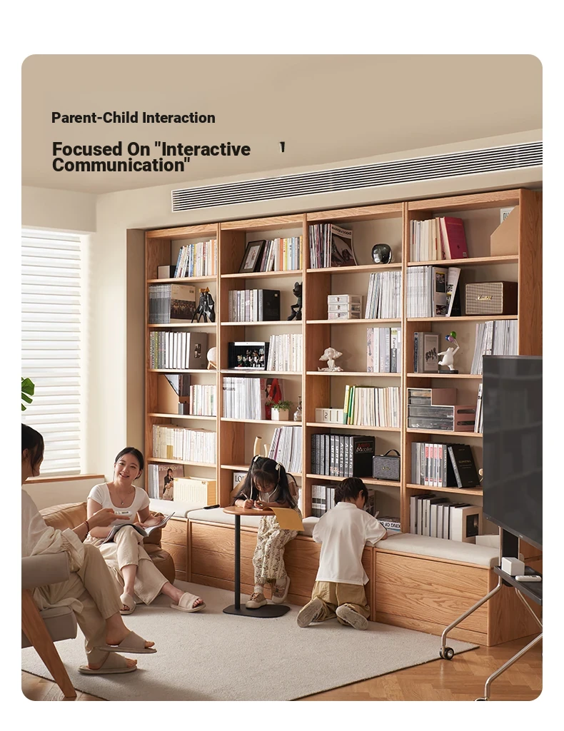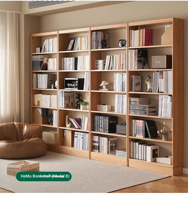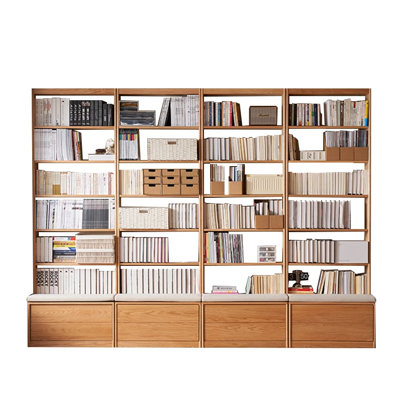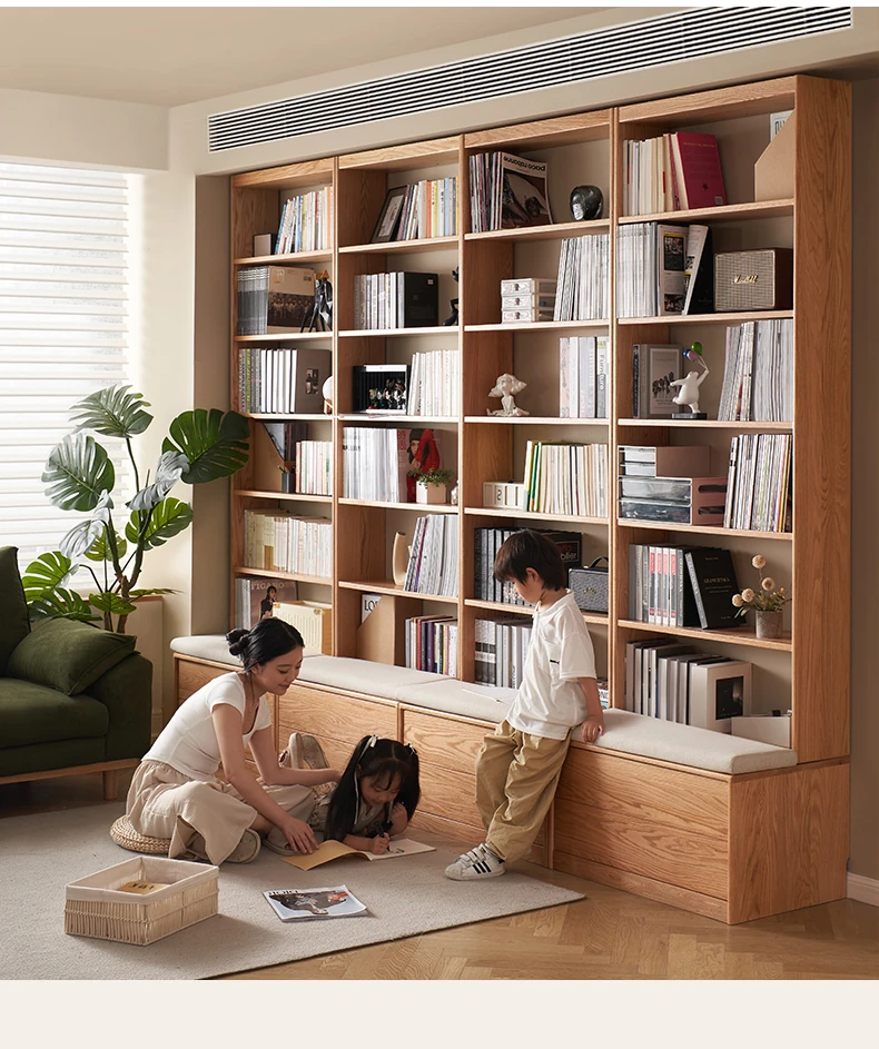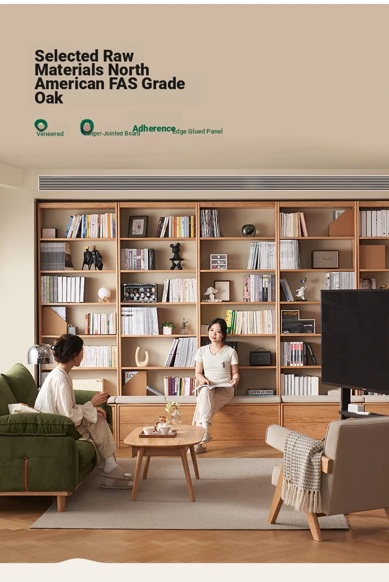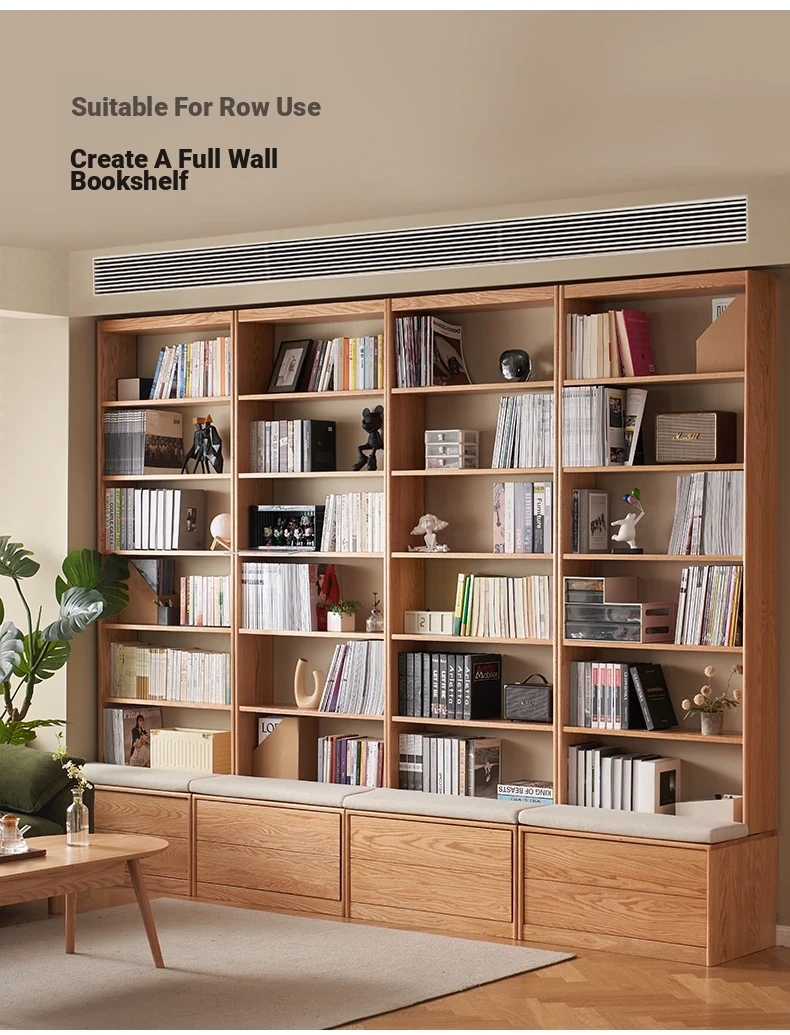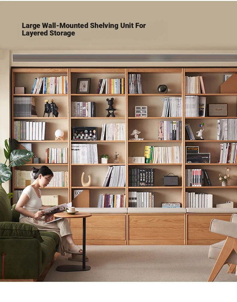 Solid Wood Bookshelf with Integrated Wall Unit - Original Elements Oak Display Cabinet for Living Room, Stylish Modular Design Perfect for Home Décor