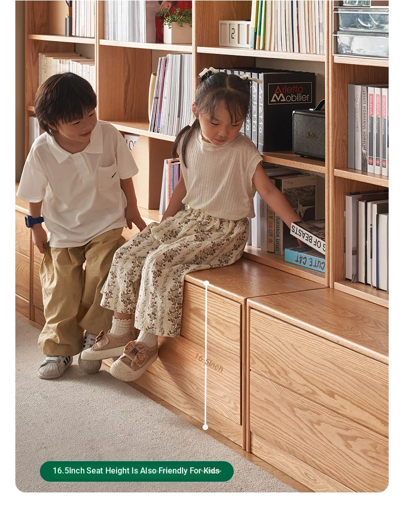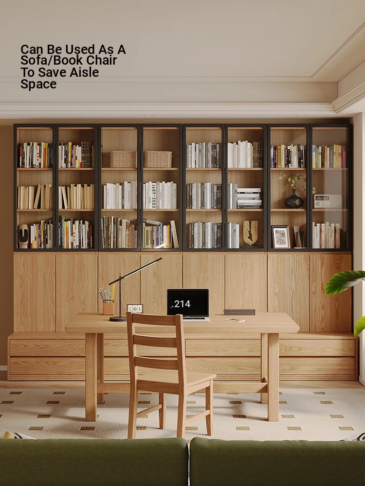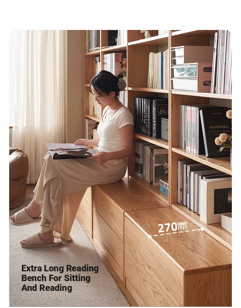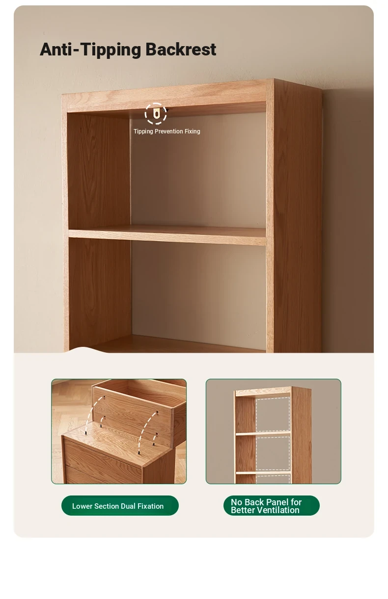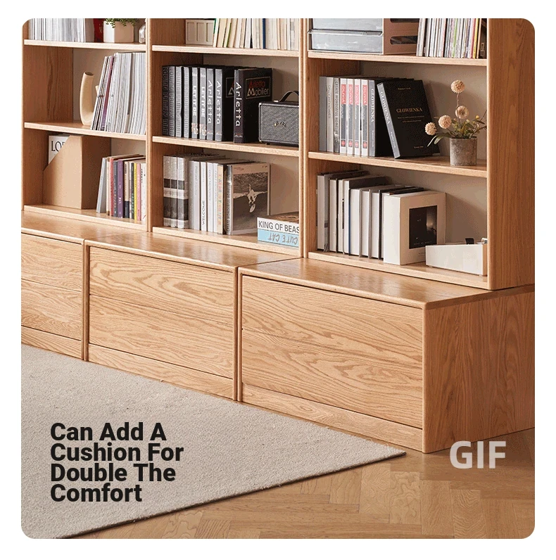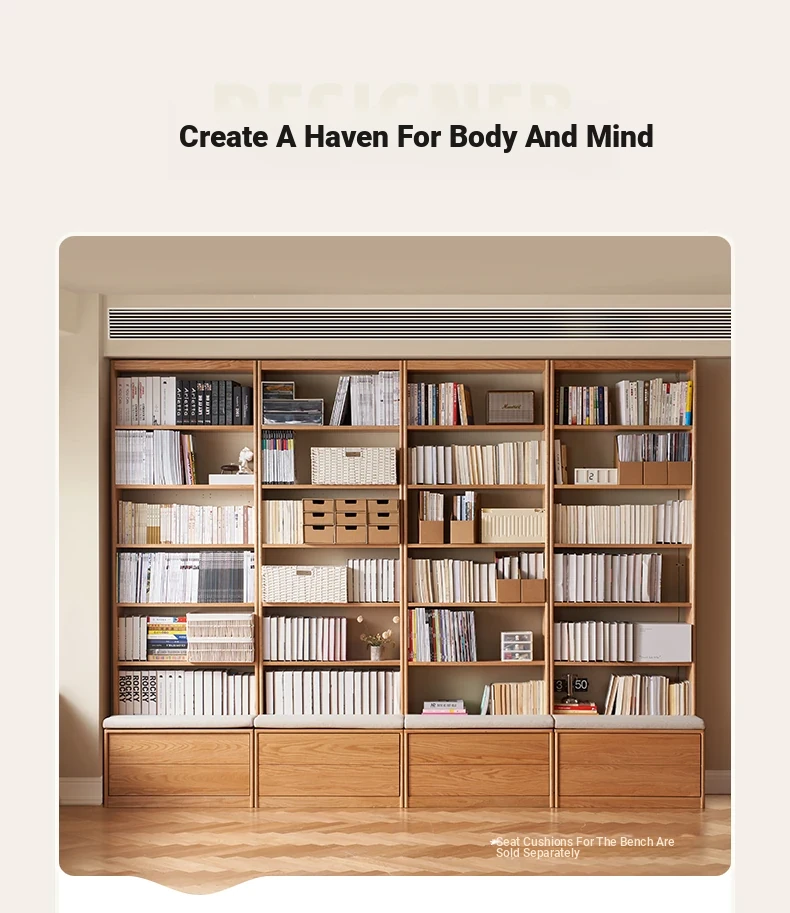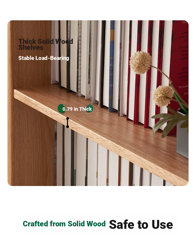 Solid Wood Bookshelf with Integrated Wall Unit - Original Elements Oak Display Cabinet for Living Room, Stylish Modular Design Perfect for Home Décor