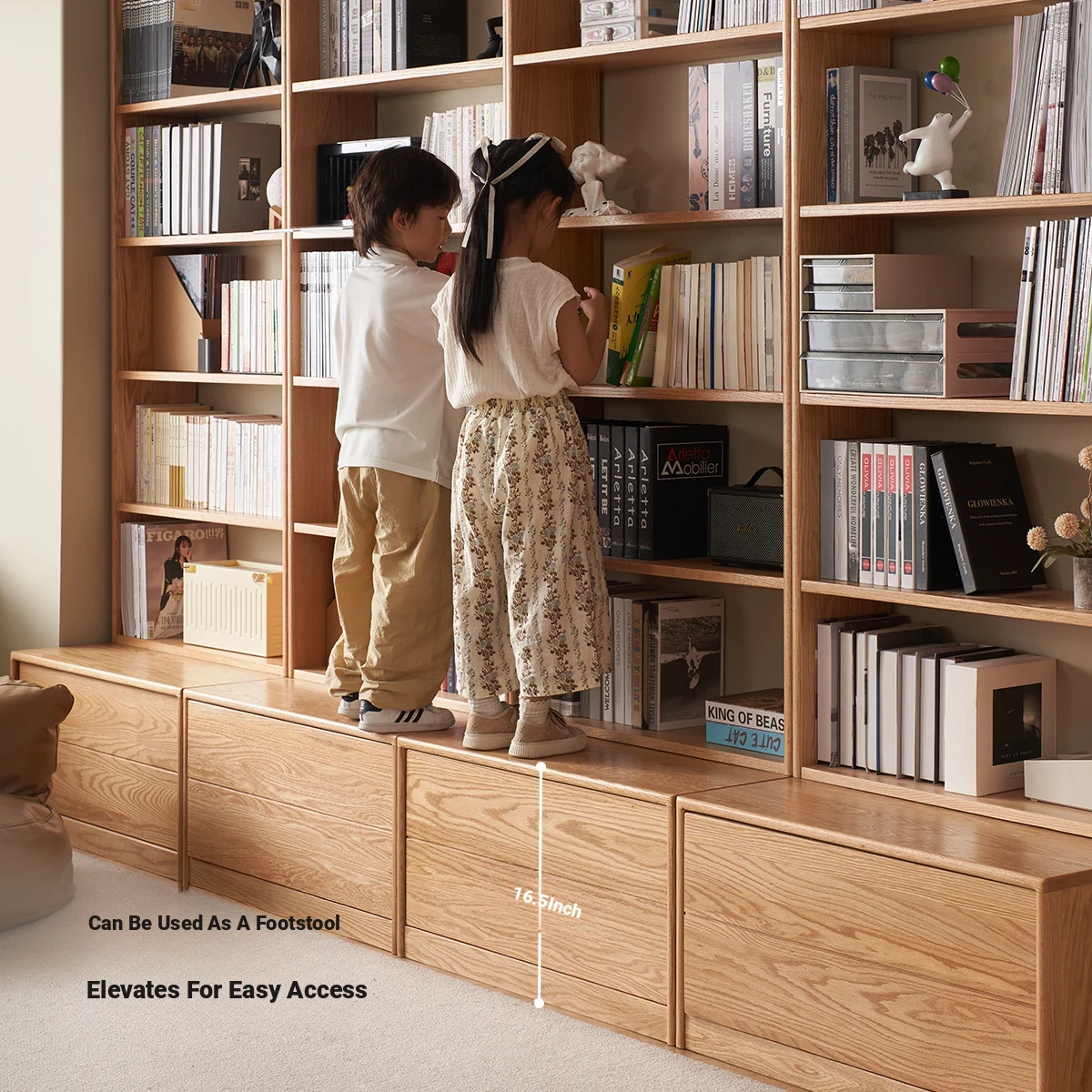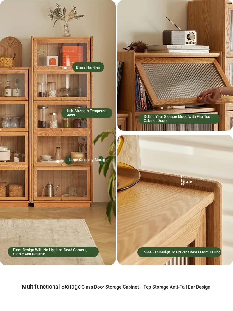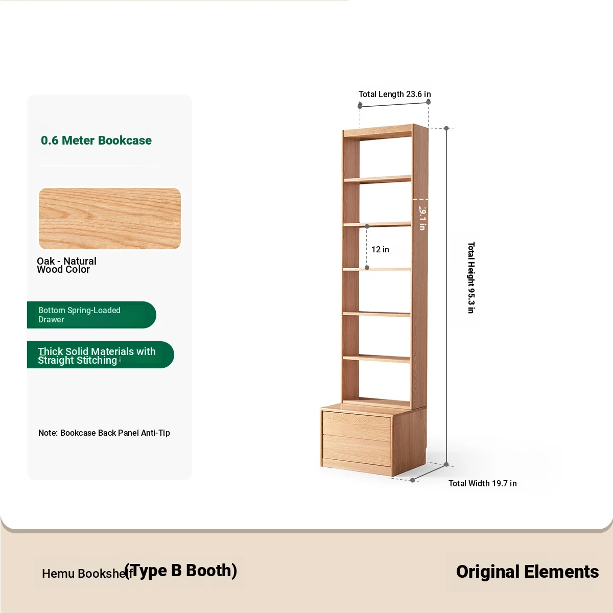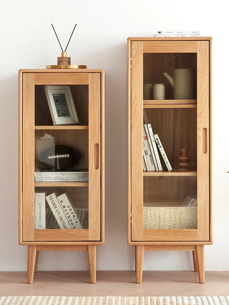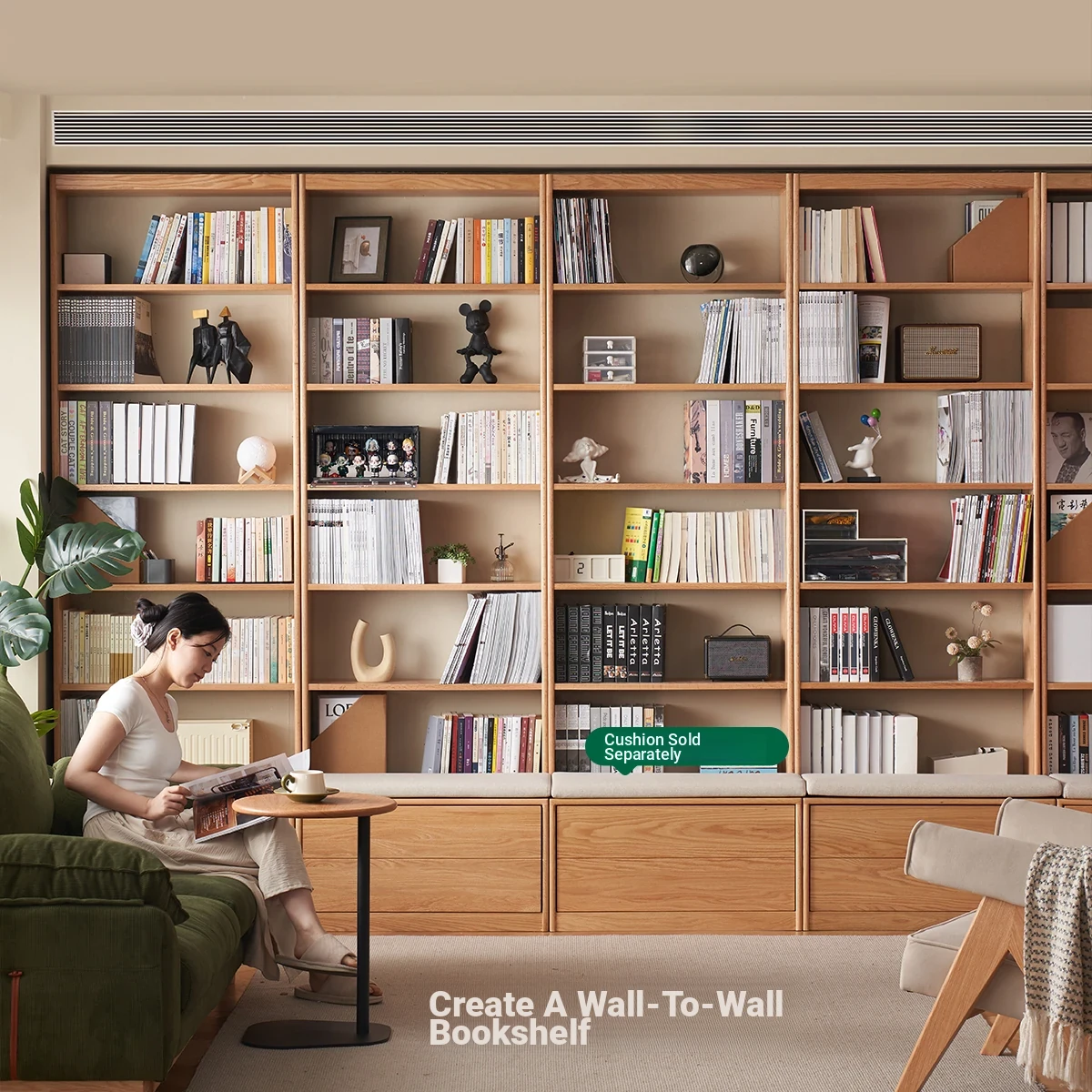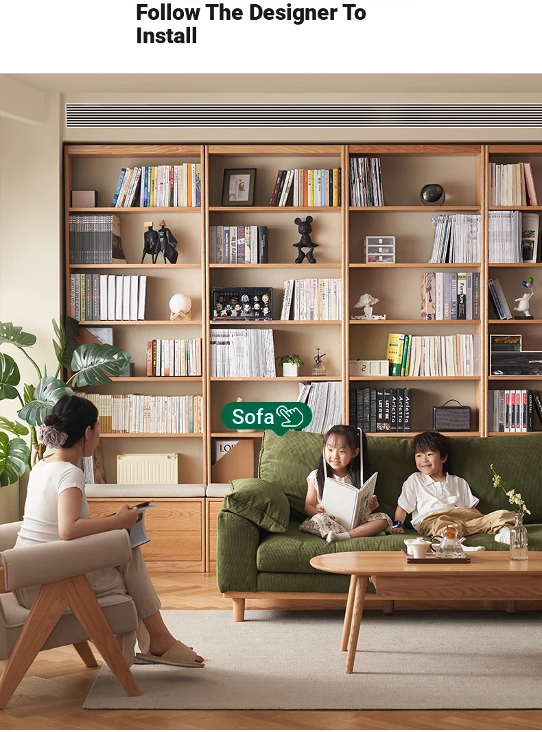Solid Wood Bookshelf with Integrated Wall Unit - Original Elements Oak Display Cabinet for Living Room, Stylish Modular Design Perfect for Home Décor