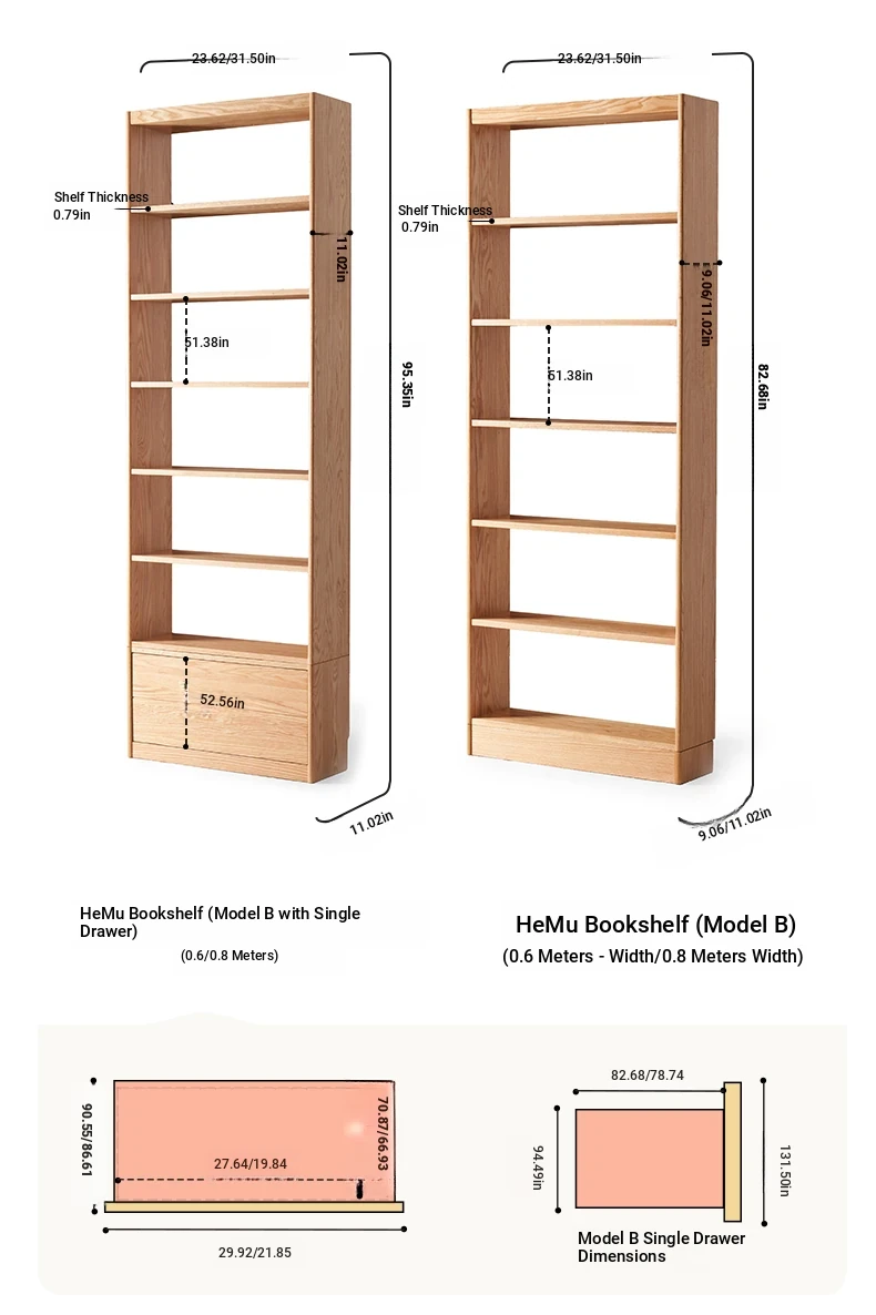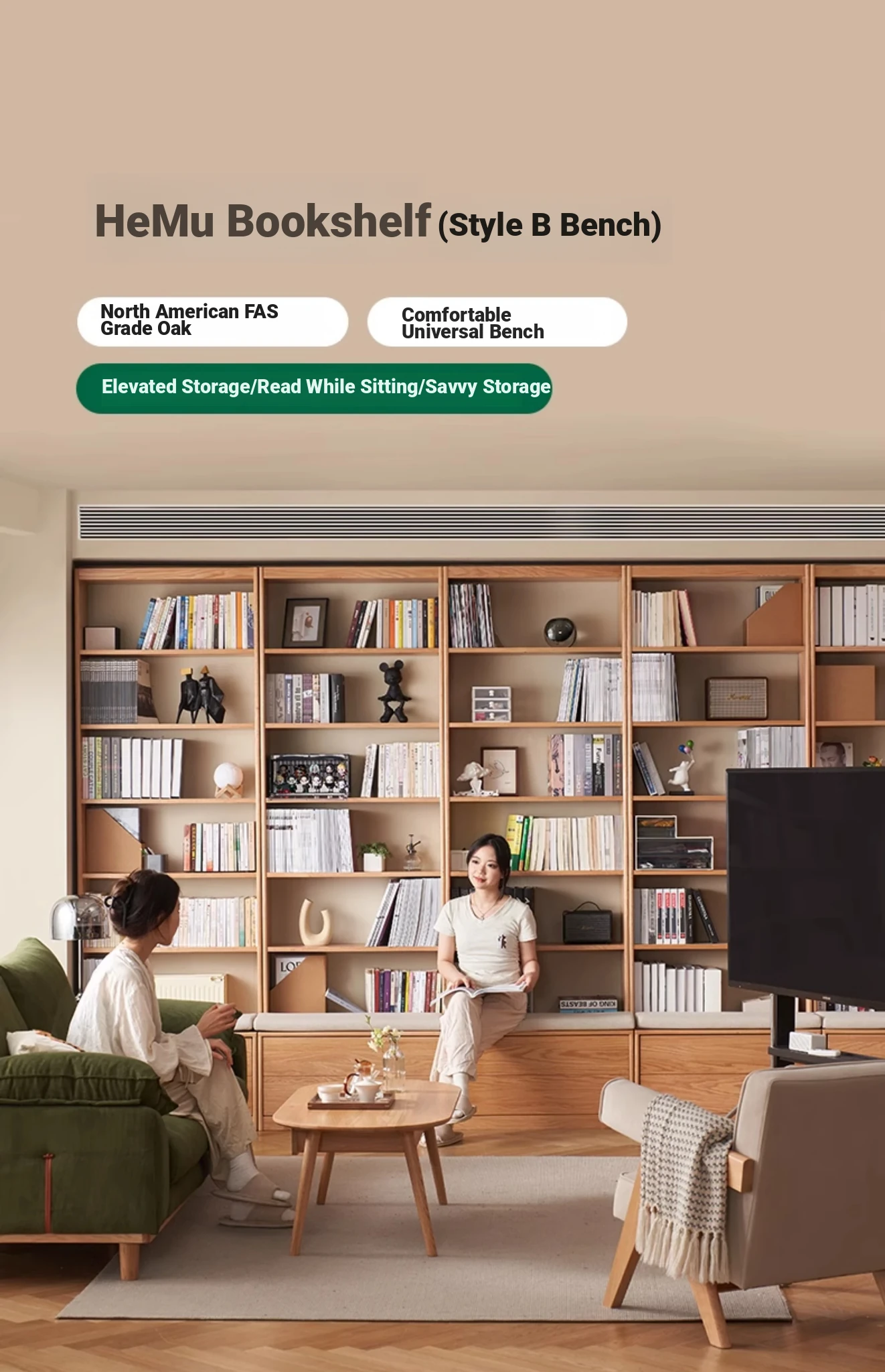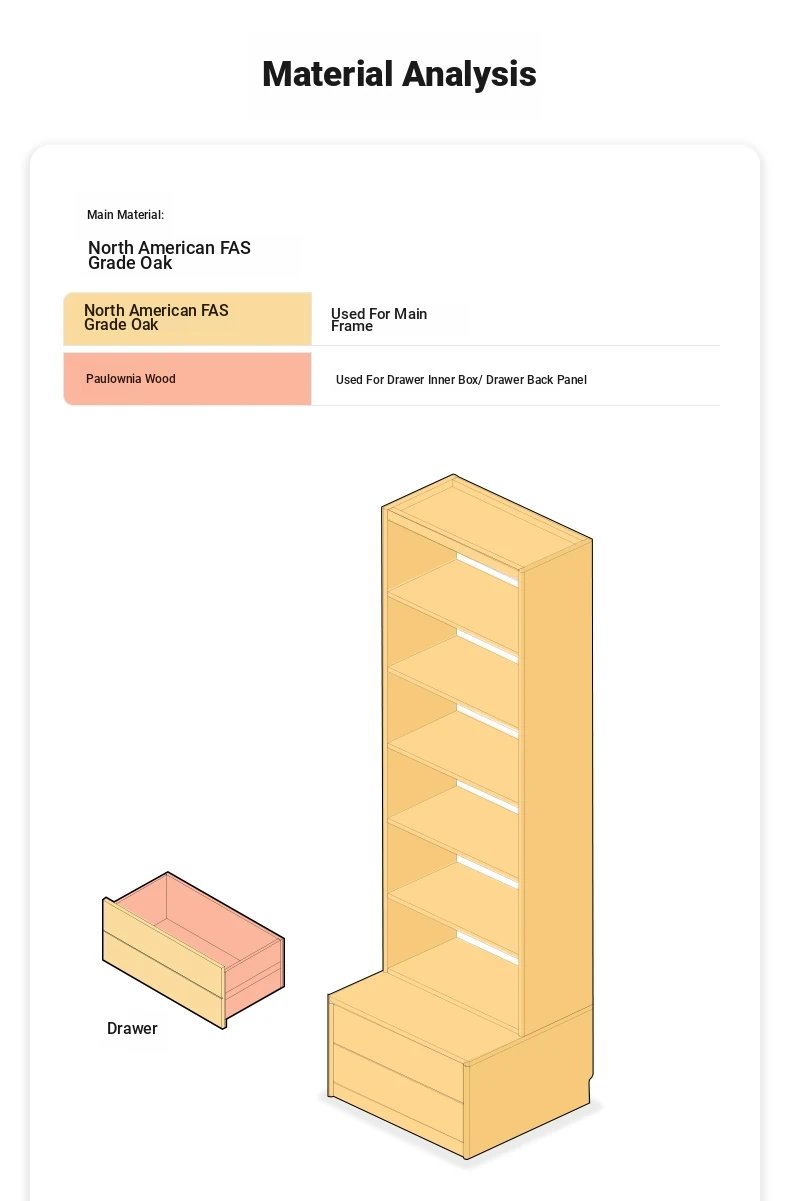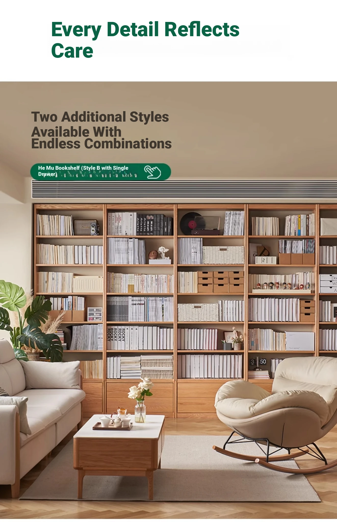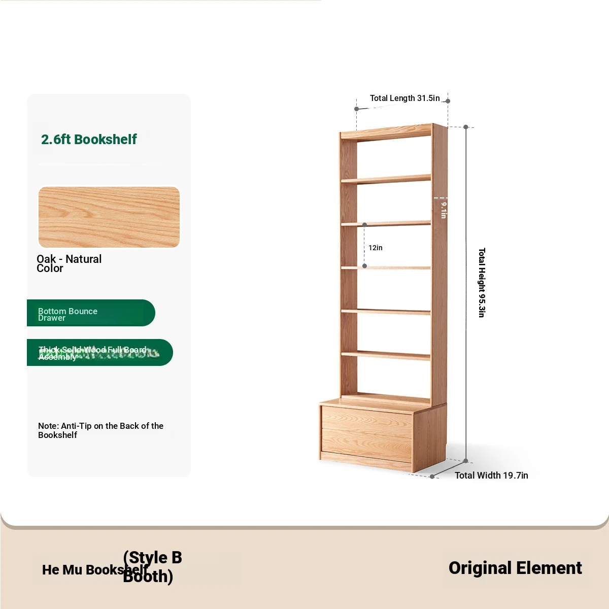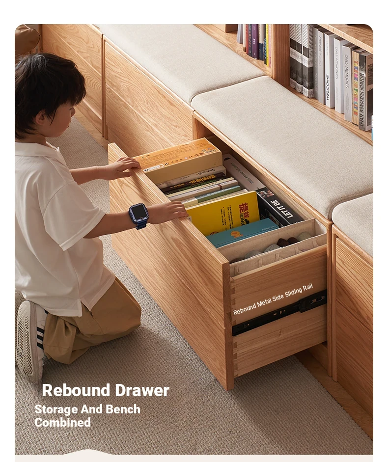 Solid Wood Bookshelf with Integrated Wall Unit - Original Elements Oak Display Cabinet for Living Room, Stylish Modular Design Perfect for Home Décor