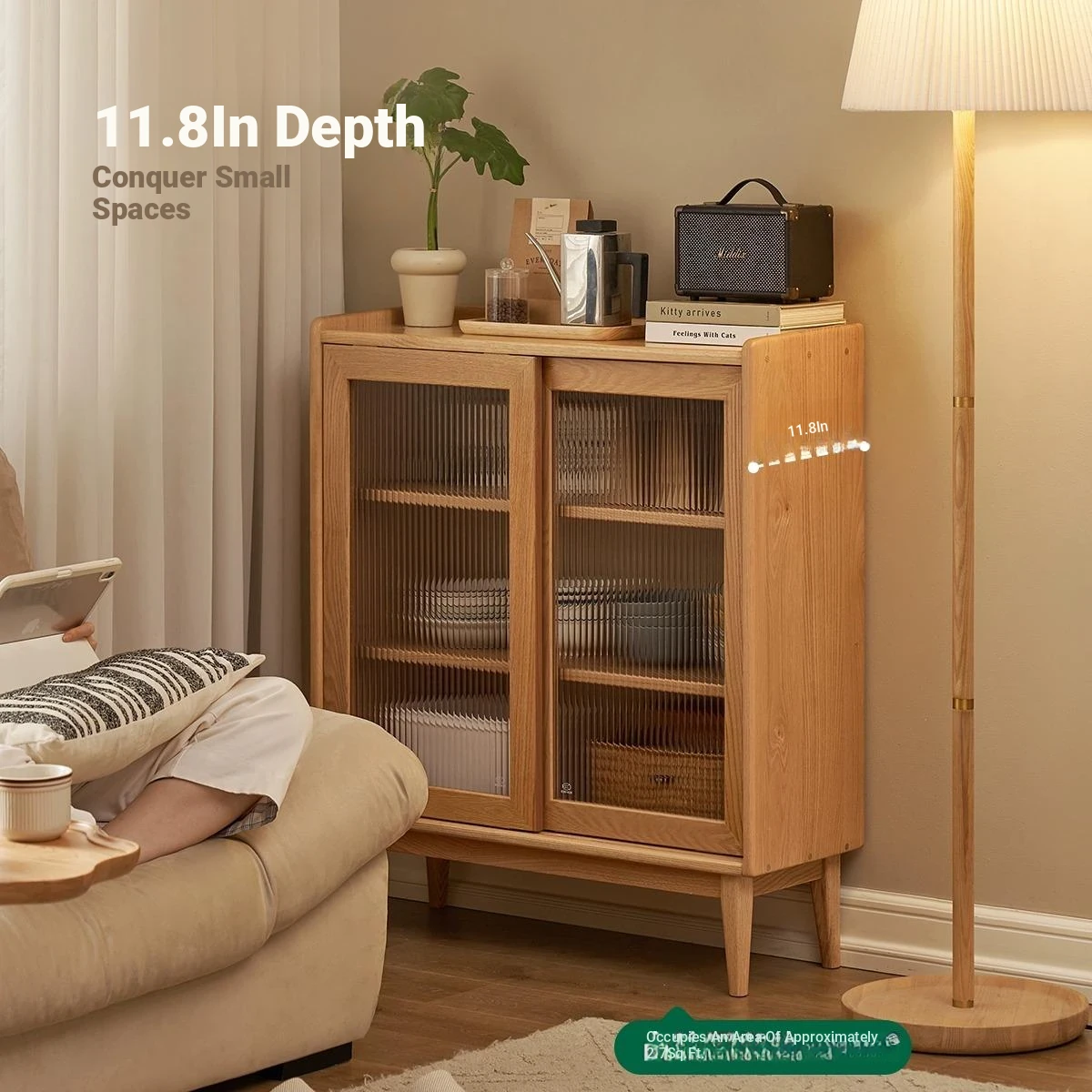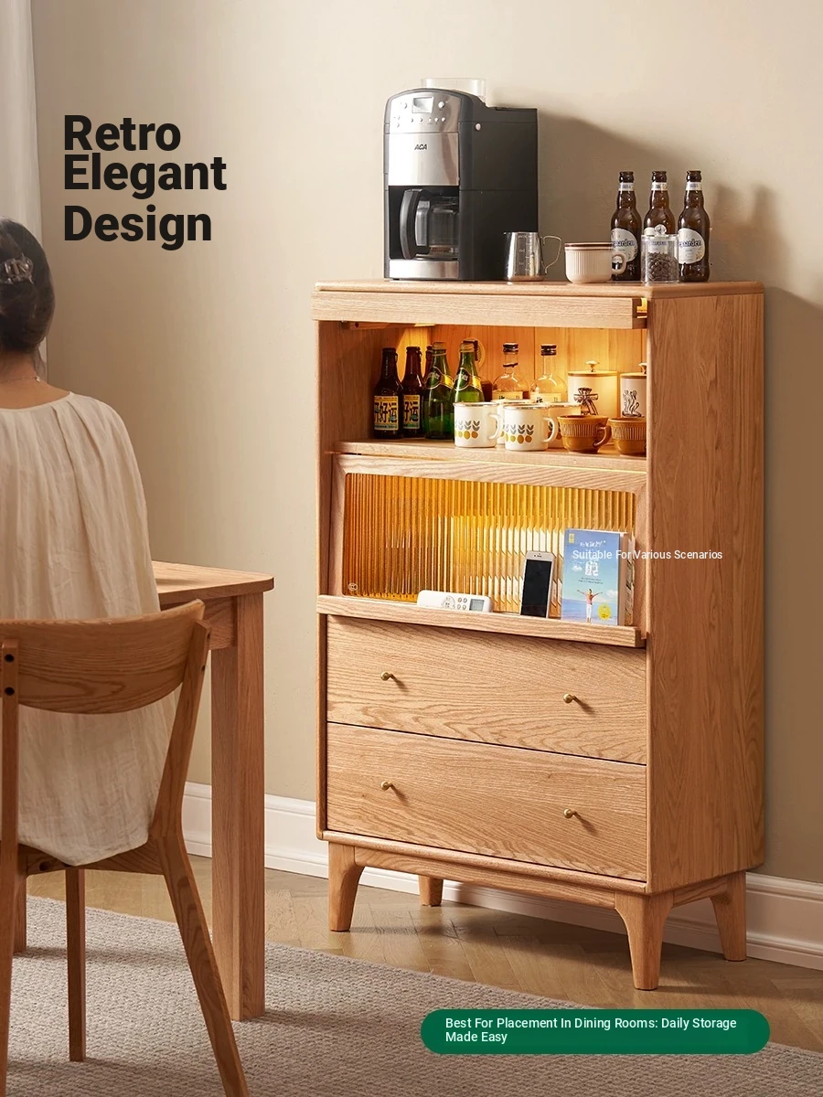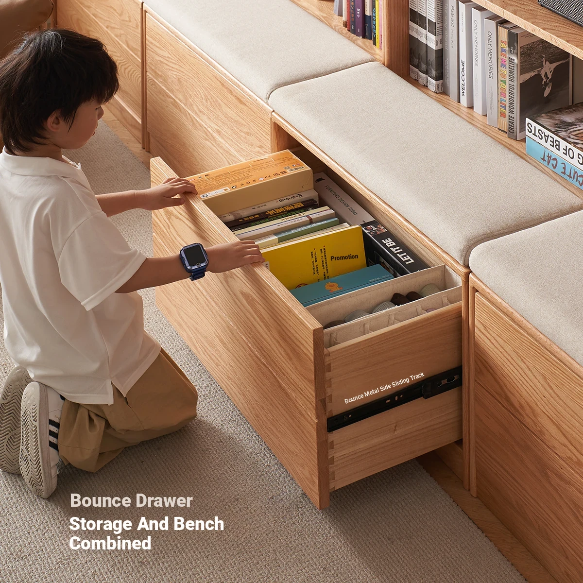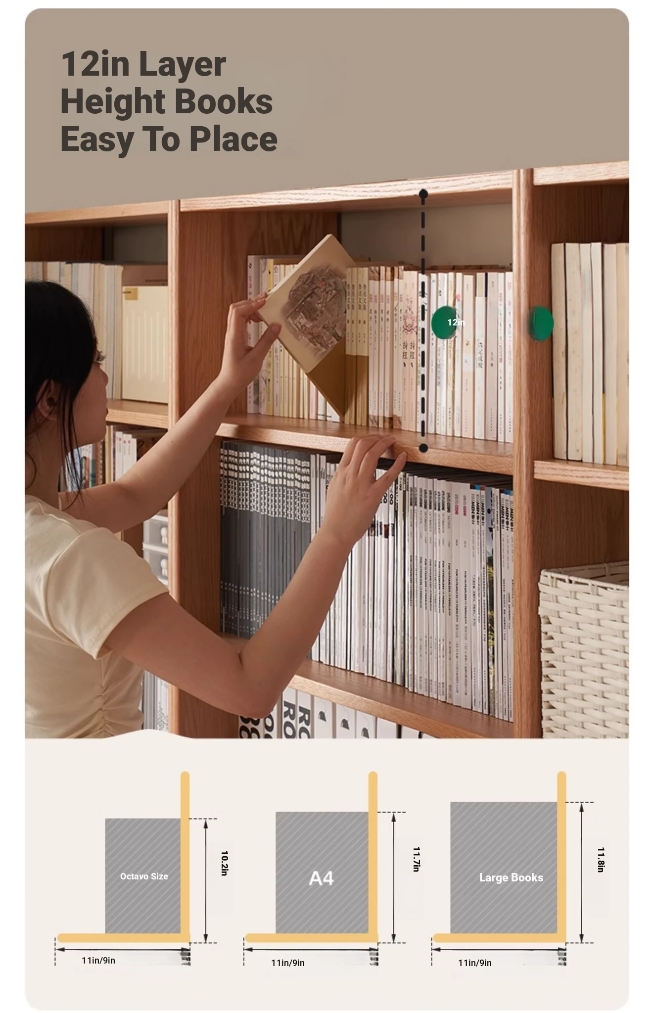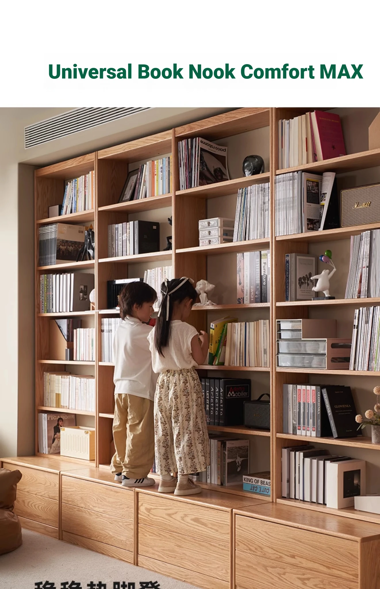 Solid Wood Bookshelf with Integrated Wall Unit - Original Elements Oak Display Cabinet for Living Room, Stylish Modular Design Perfect for Home Décor
