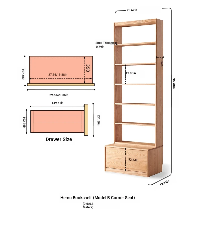 Log color -23.62in six-layer card holder bookcase 23.62in*19.69in*95.28in(In Stock speed hair])