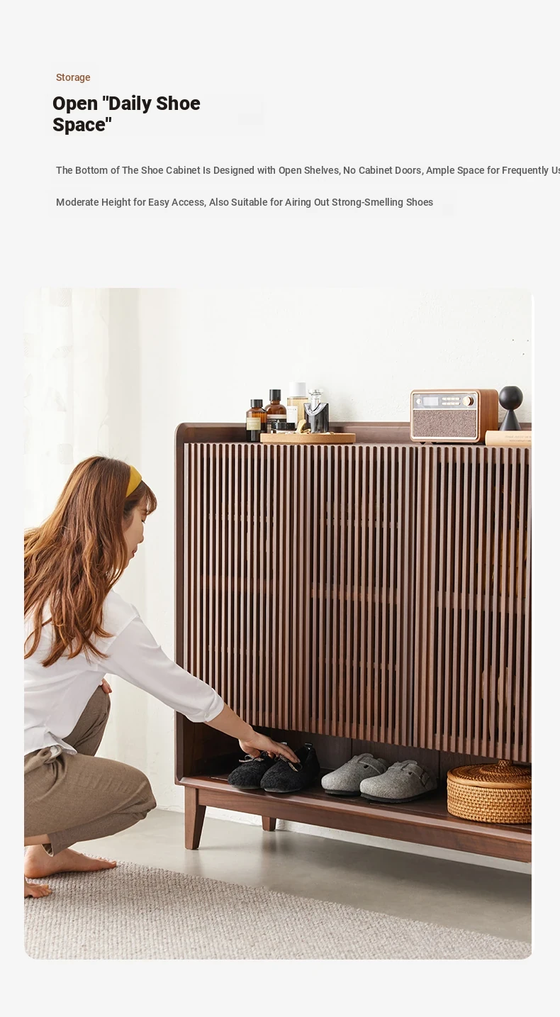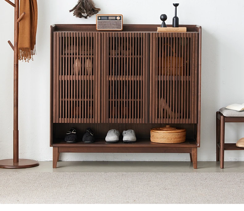 Stylish Solid Wood Shoe Cabinet in Nordic Black Walnut - Perfect Storage Solution for Small Spaces, Ideal for Living Rooms and Entryways.