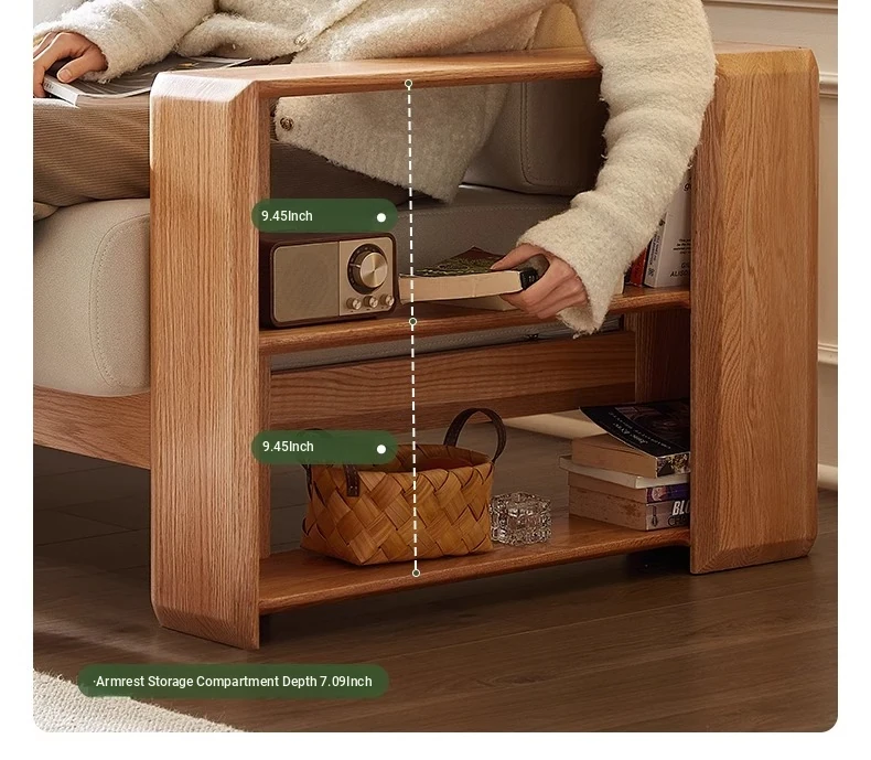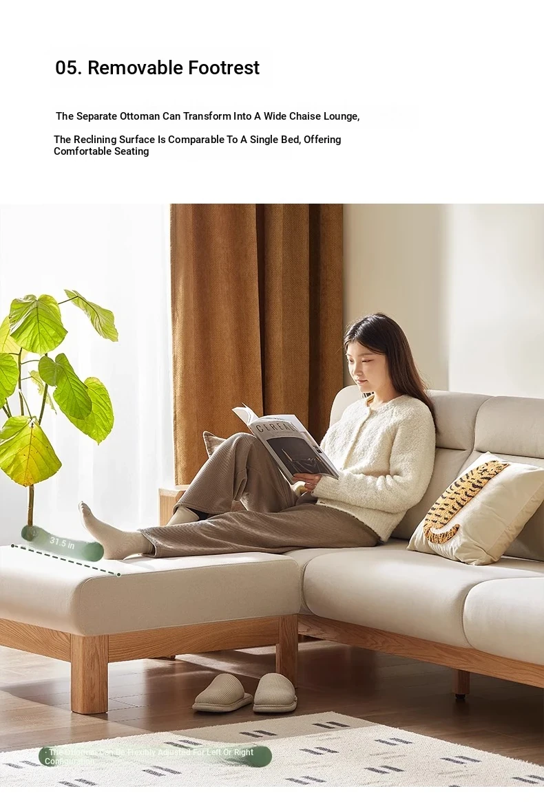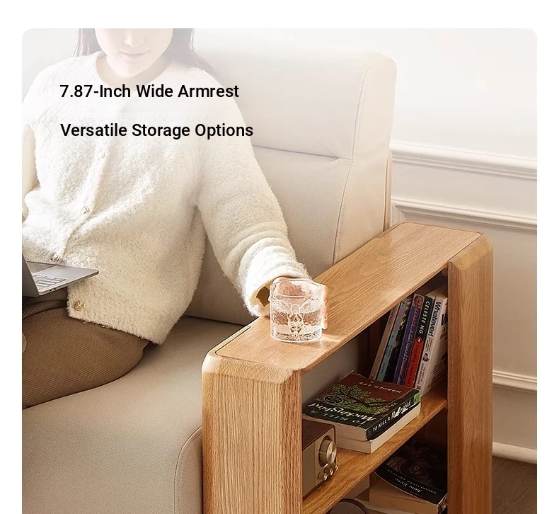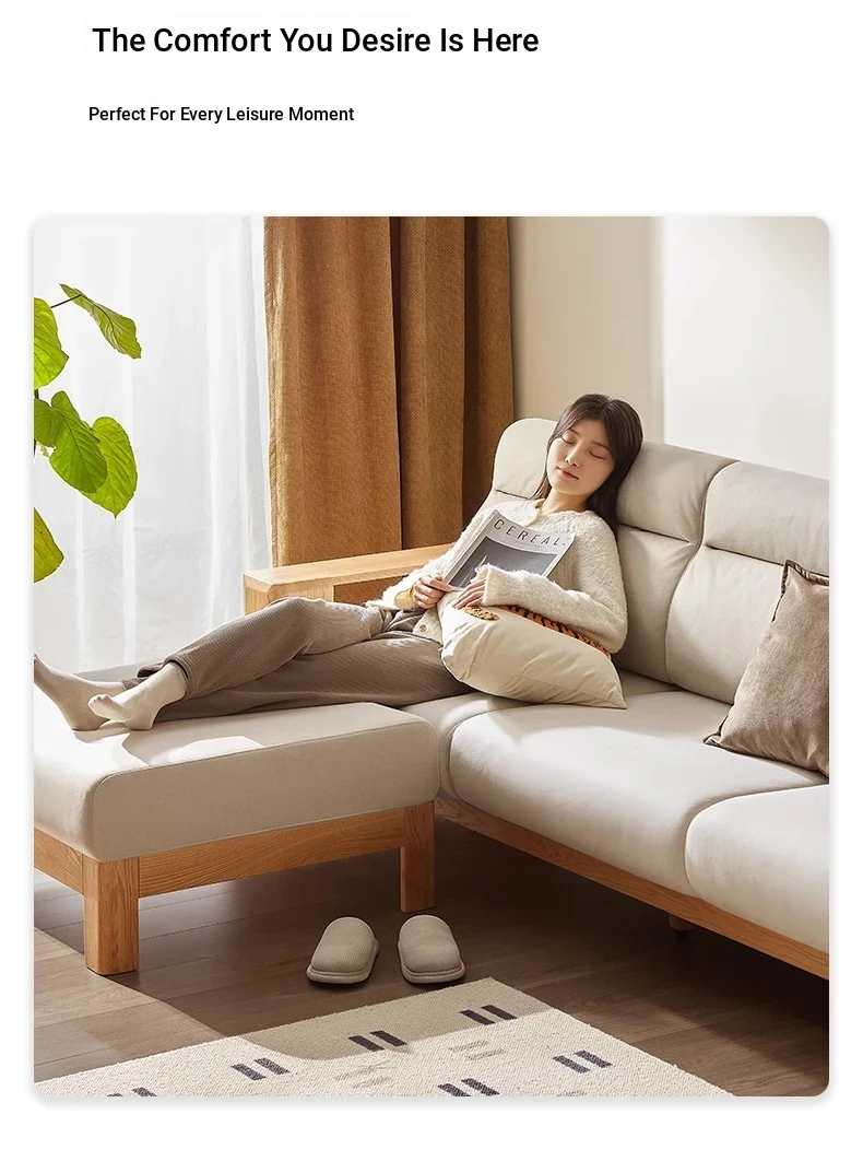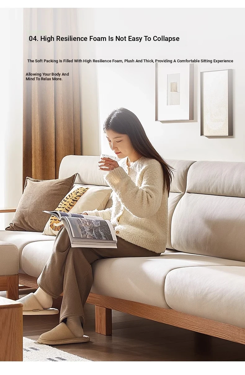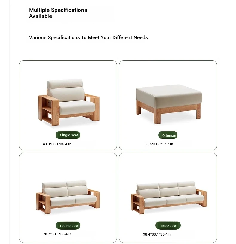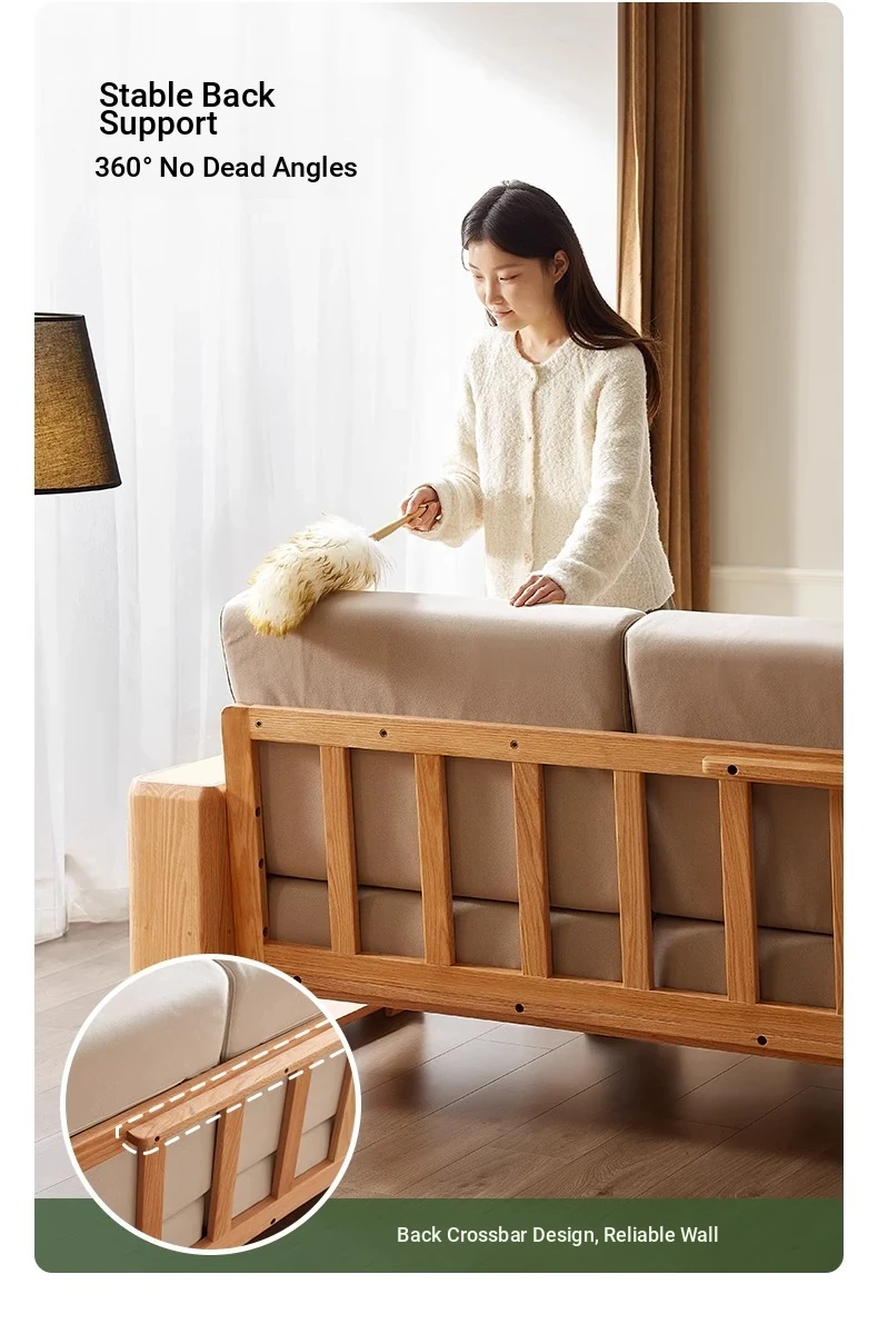 ナチュラルオークウッドソファ|現代的でシンプルなデザイン|リビングにぴったり|角度自在なファブリック二人掛けソファ|心地よい木の温もりをお届け!