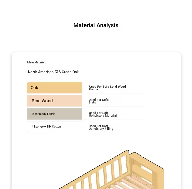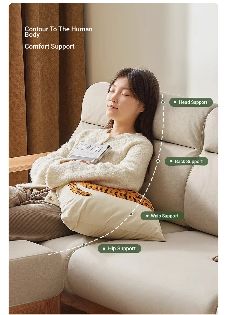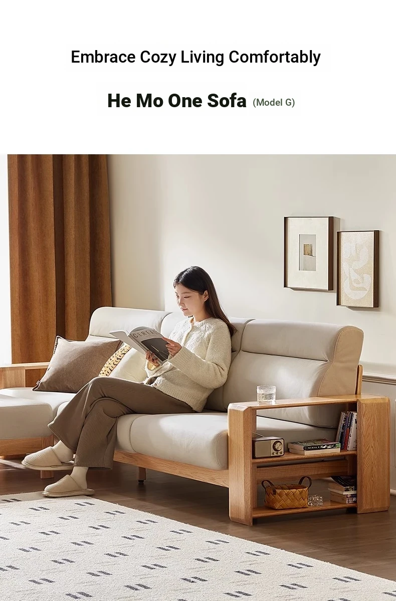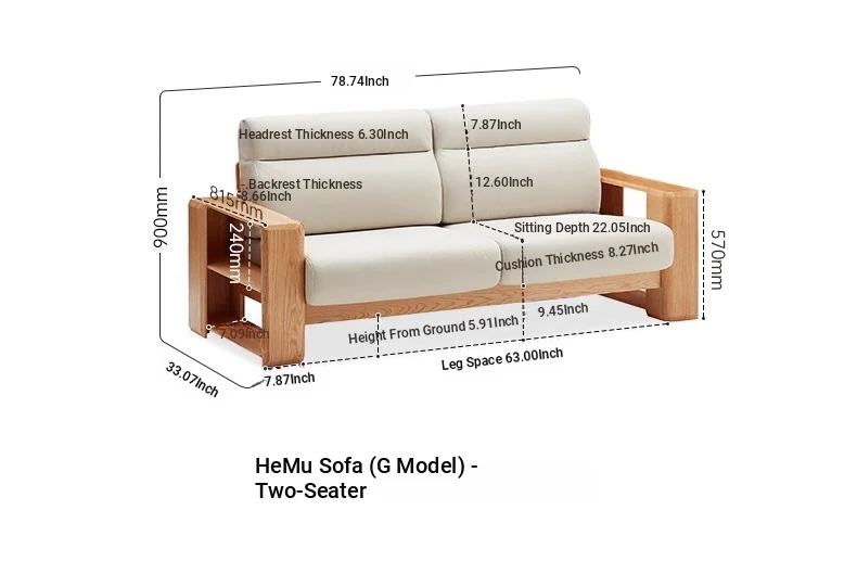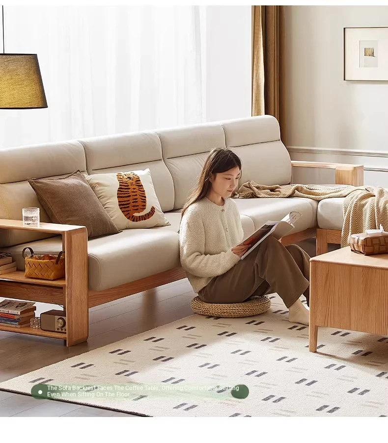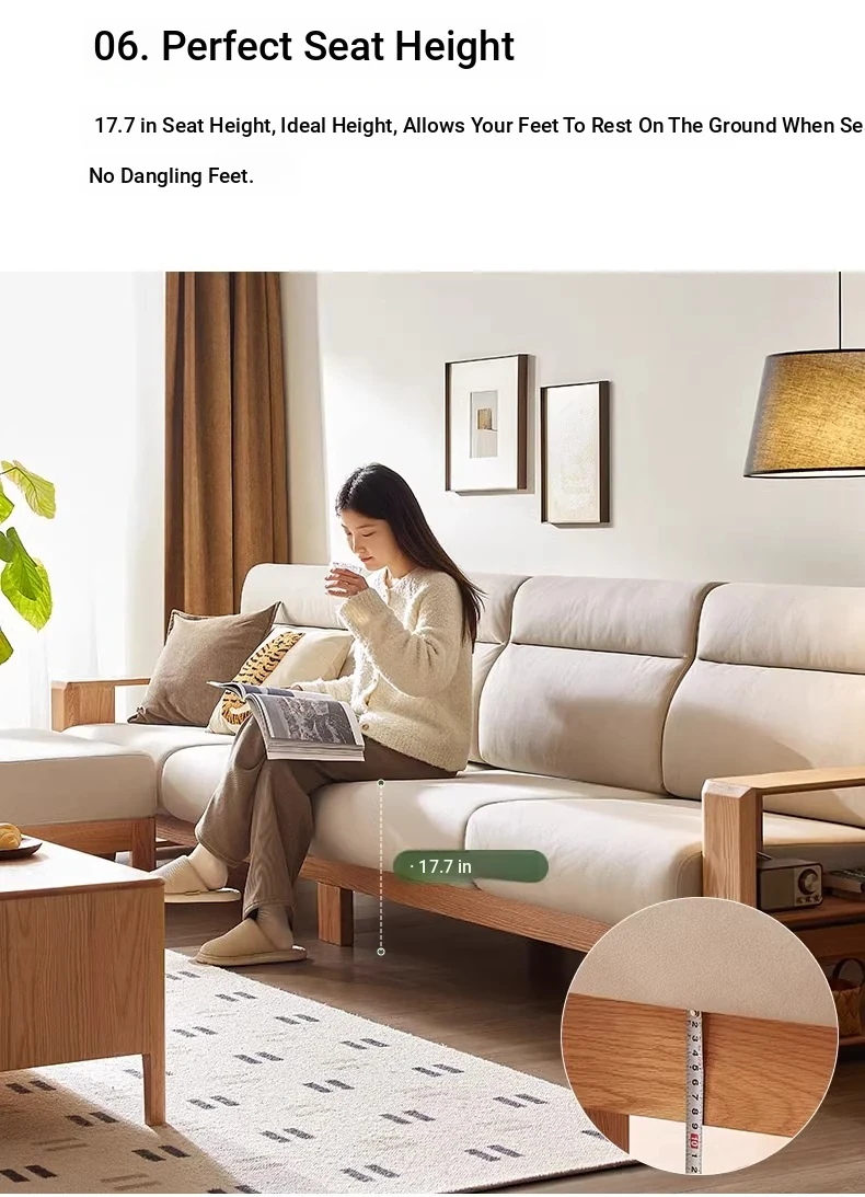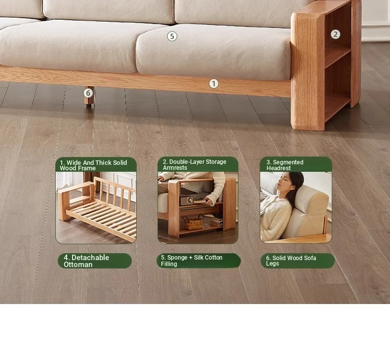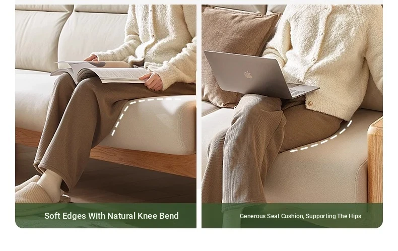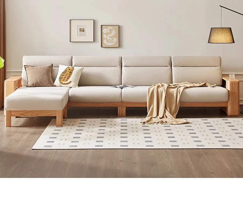 ナチュラルオークウッドソファ|現代的でシンプルなデザイン|リビングにぴったり|角度自在なファブリック二人掛けソファ|心地よい木の温もりをお届け!