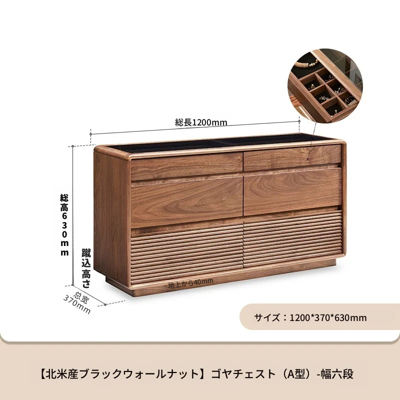 北米のブラックウォルナット製1.2メートル幅の六段チェスト(1200*370*630mm)