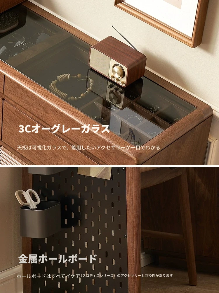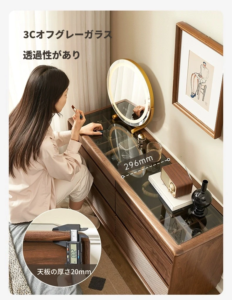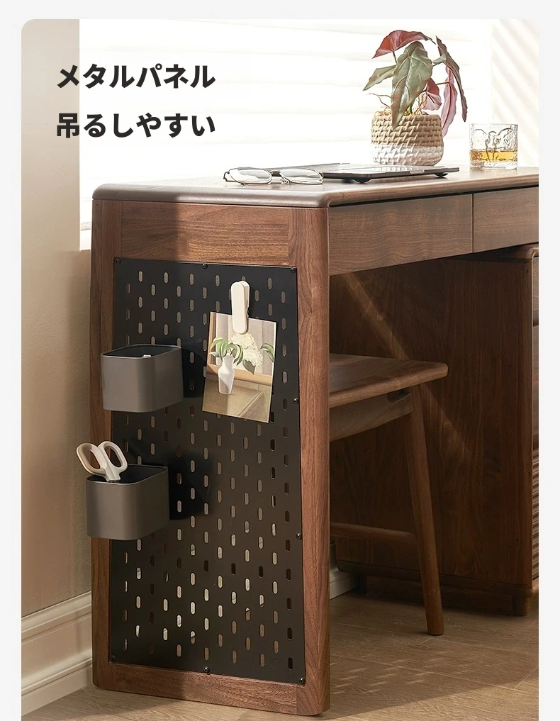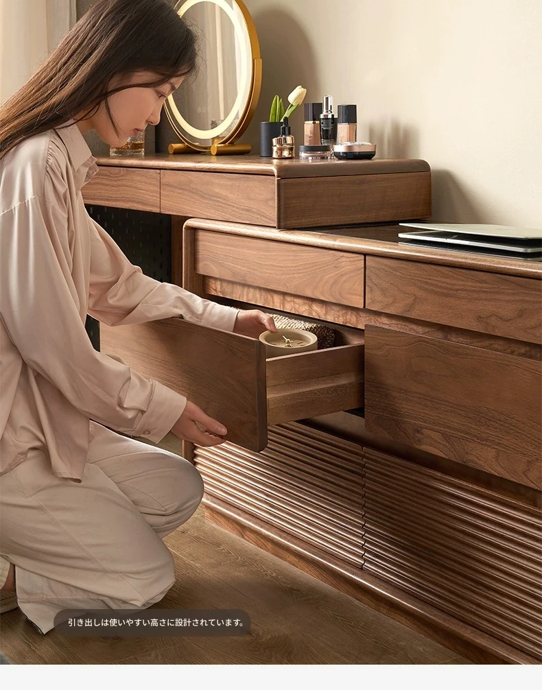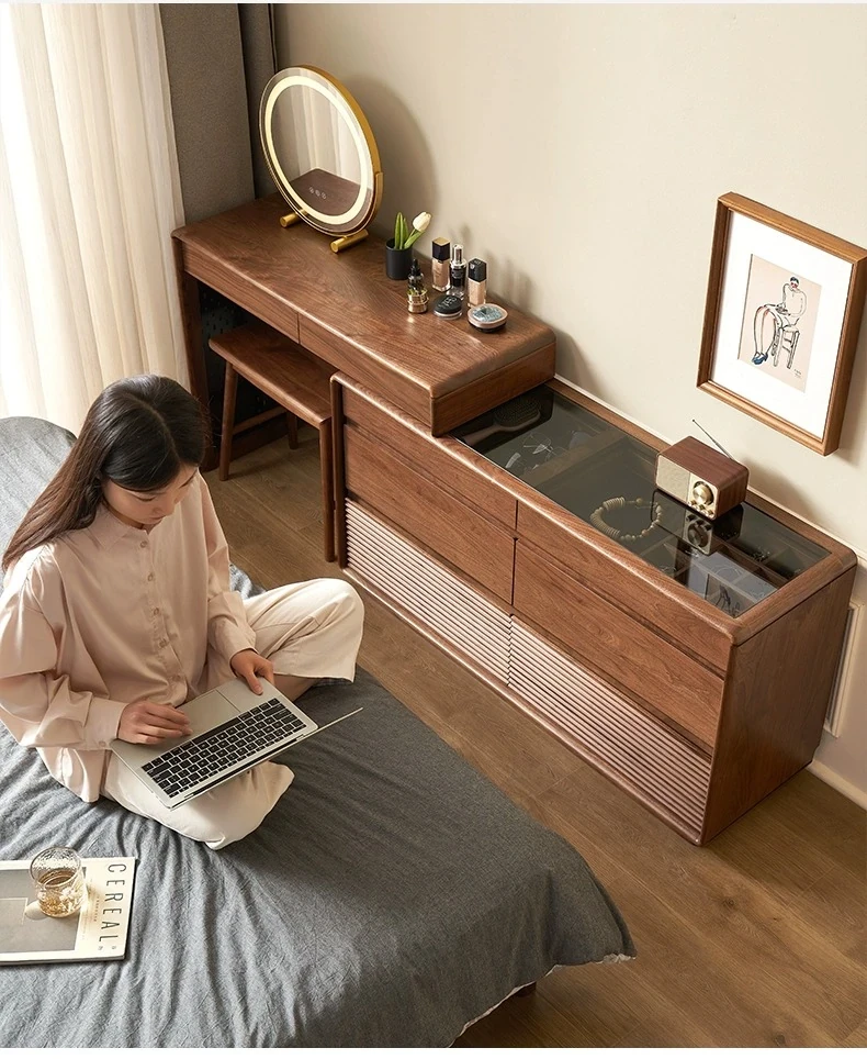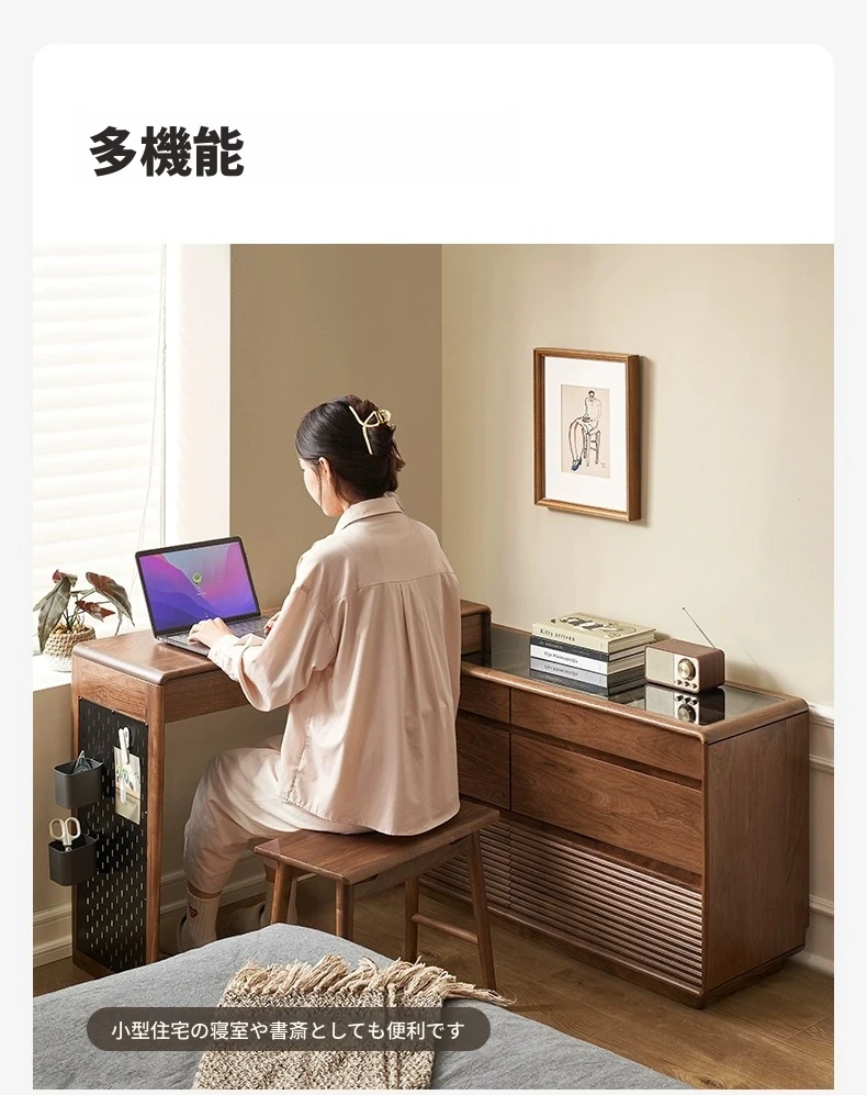 北米産ブラックウォールナット1.2メートル幅の六引き出しキャビネット + 0.99メートルL字型デスク + 化粧台椅子(M1133)