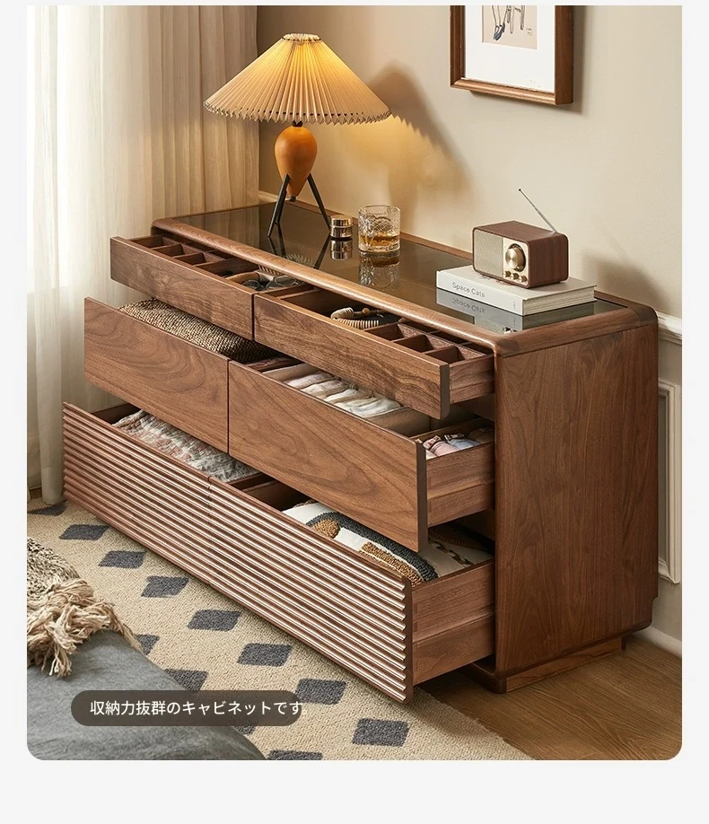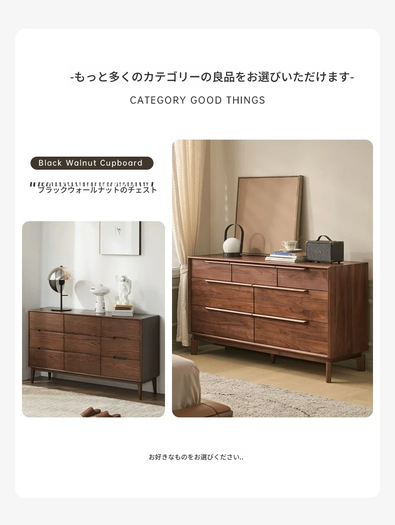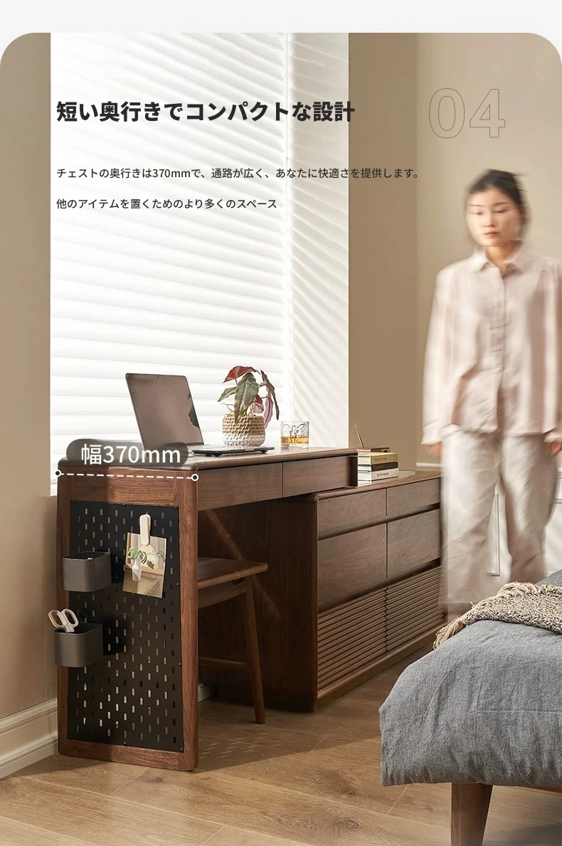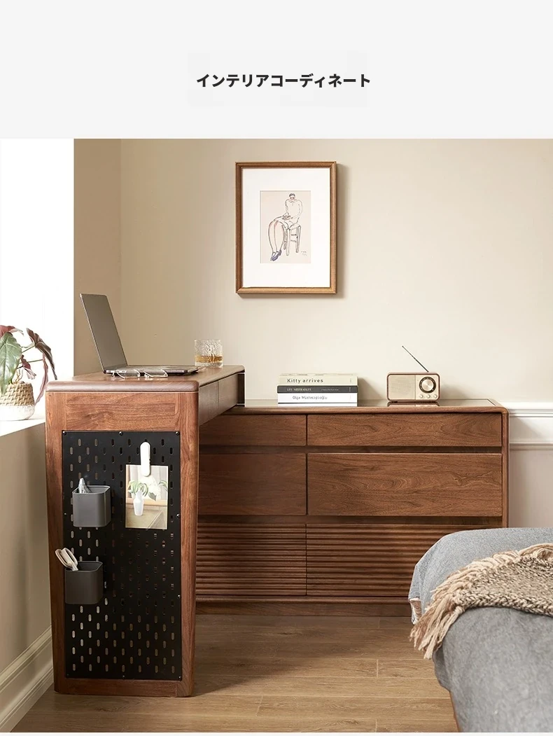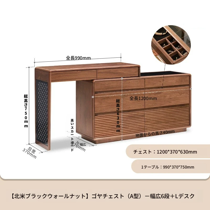 北米産ブラックウォールナット 1.2メートル幅六段チェスト + 0.99メートルL字デスク