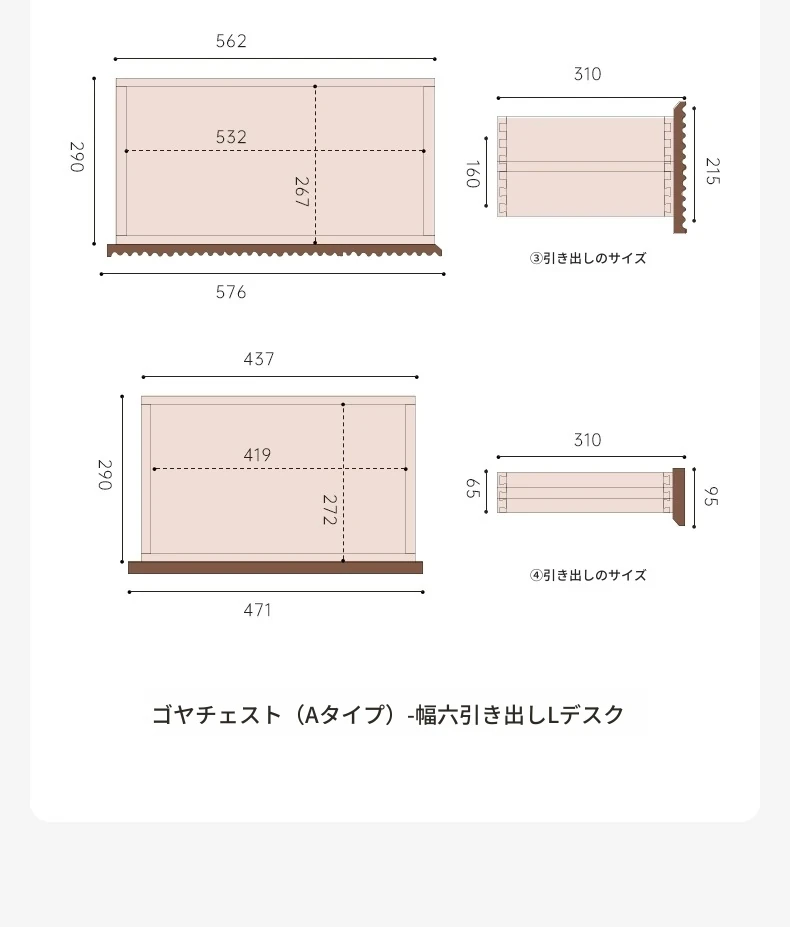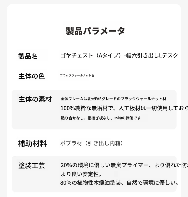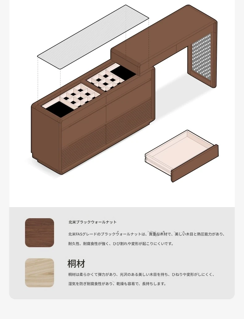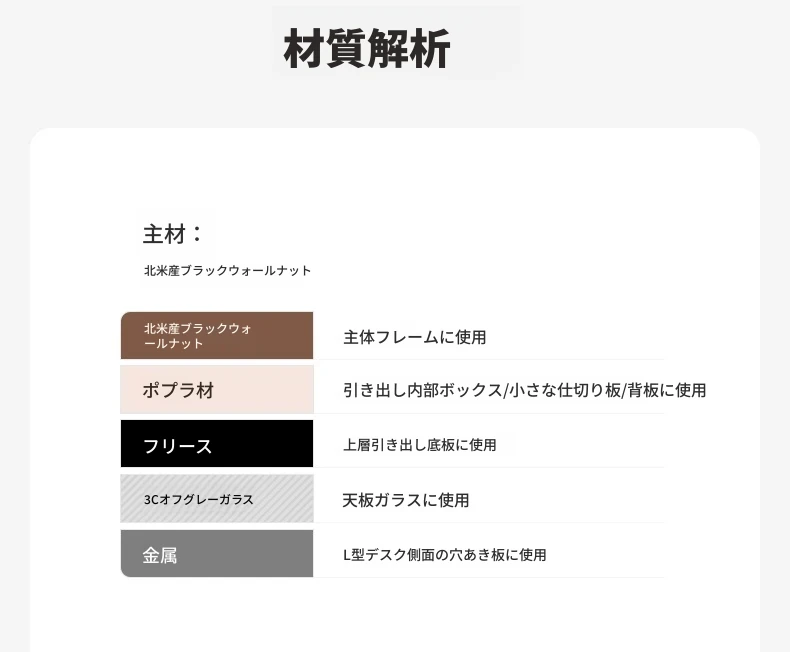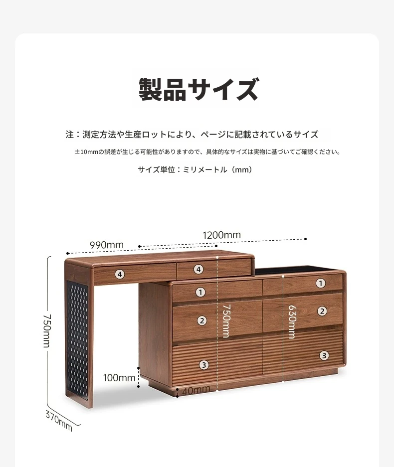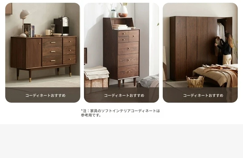 北米産ブラックウォールナット 1.2メートル幅六段チェスト + 0.99メートルL字デスク