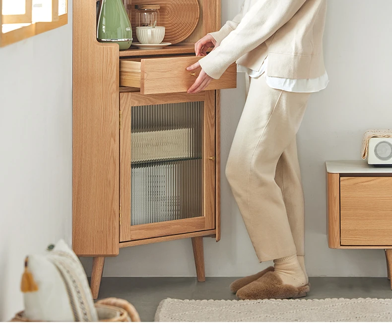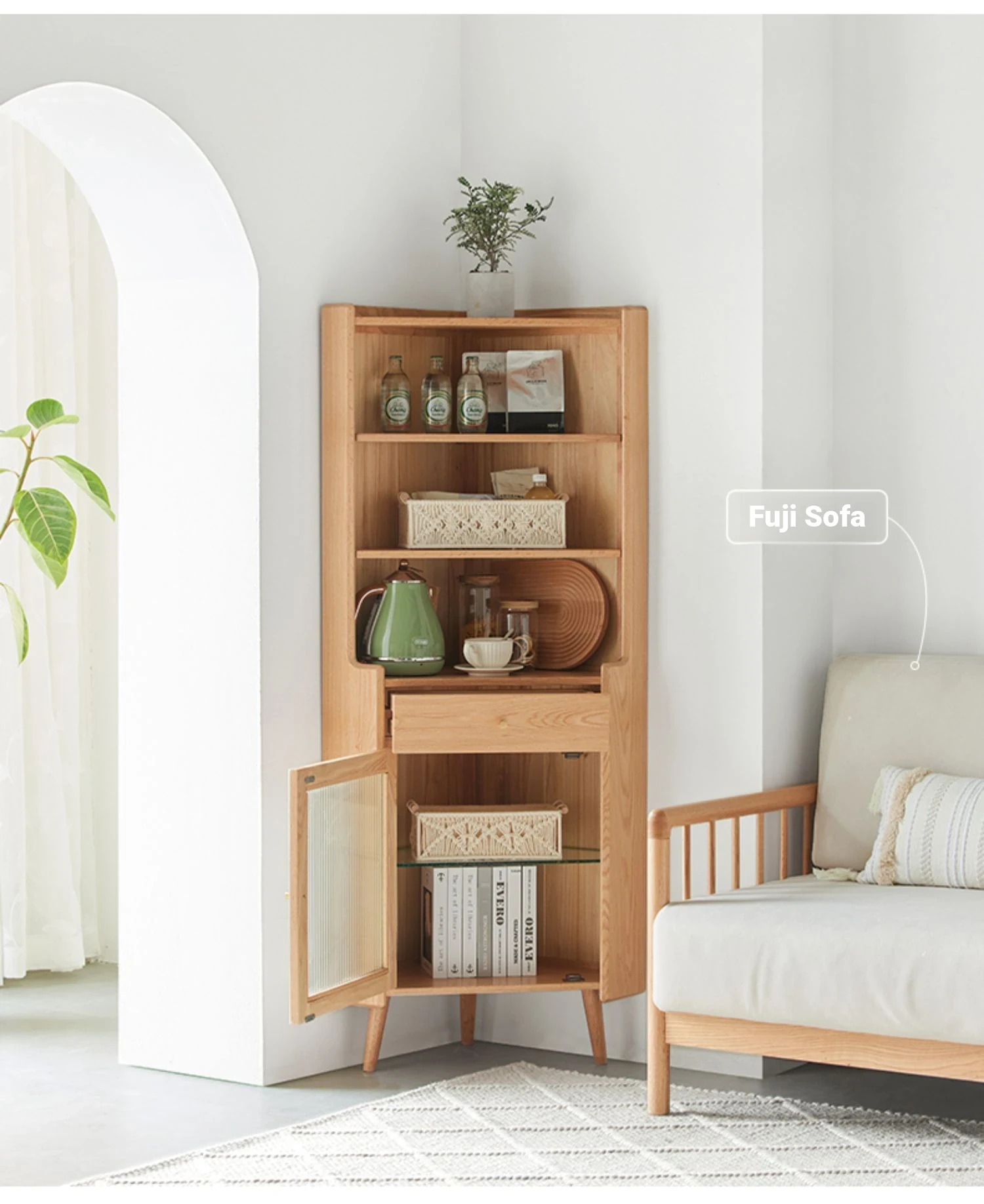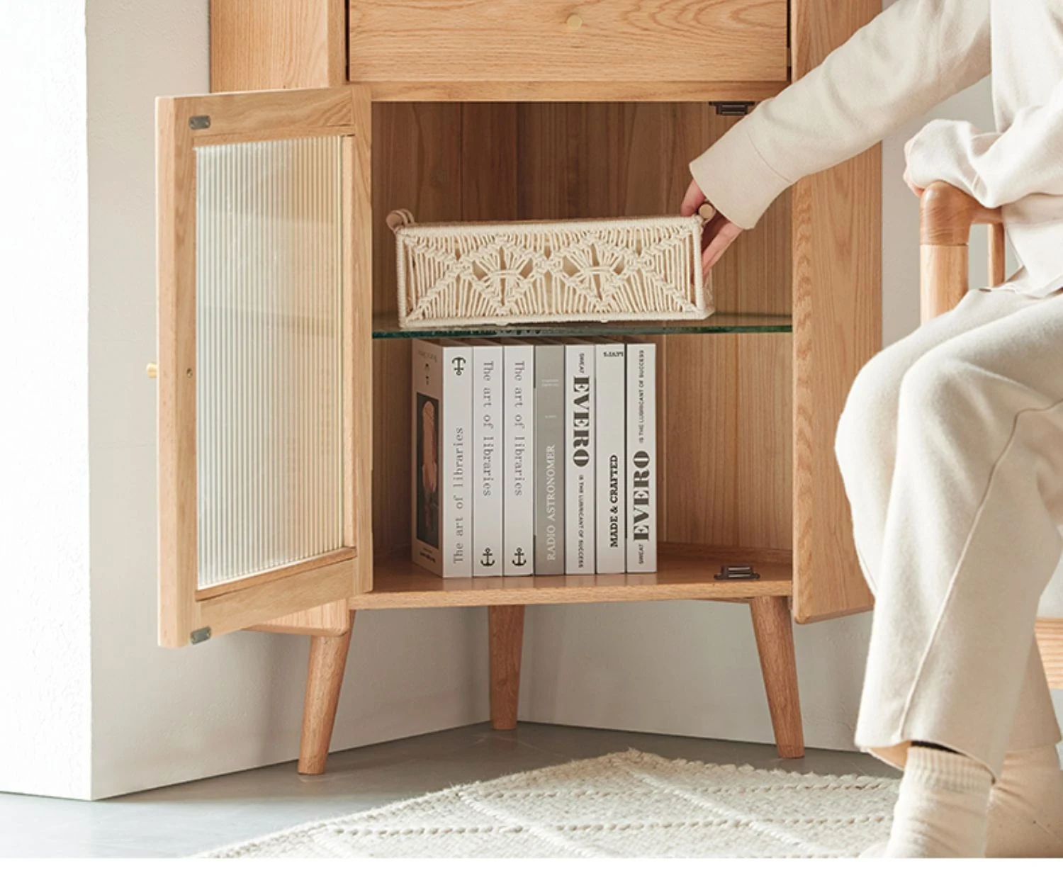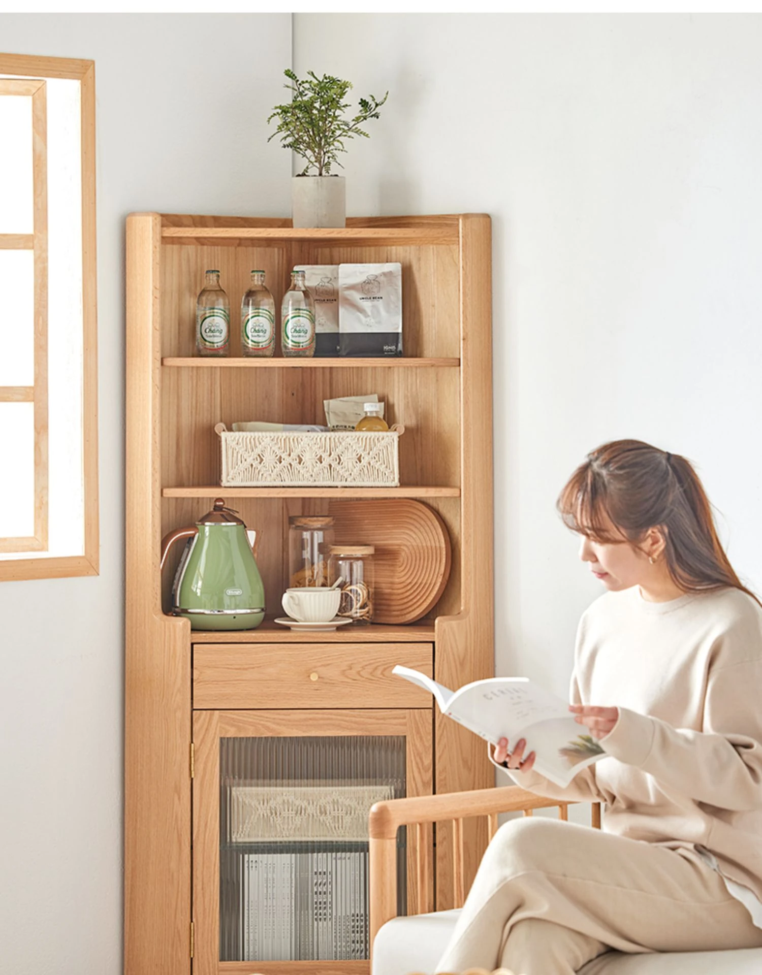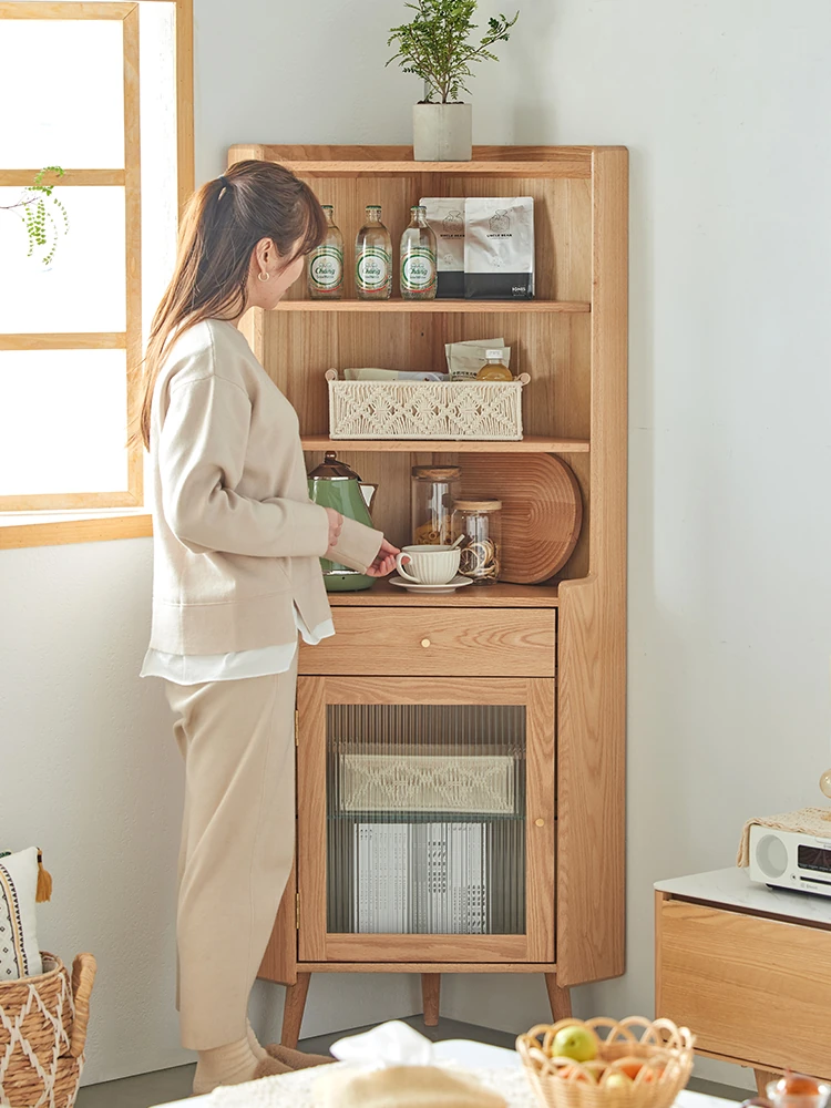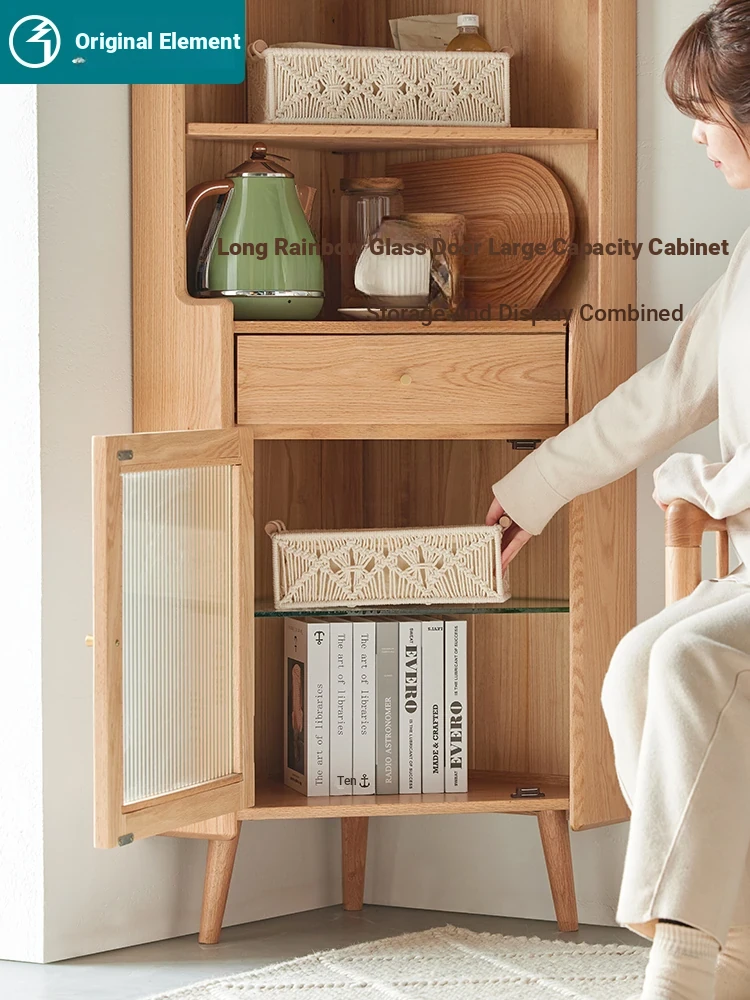 Original Element Solid Wood Corner Cabinet - Modern Minimalist Living Room Wine Rack, Oak Storage Shelf, Wall-Mounted Triangle Cabinet, Perfect for Small Spaces!