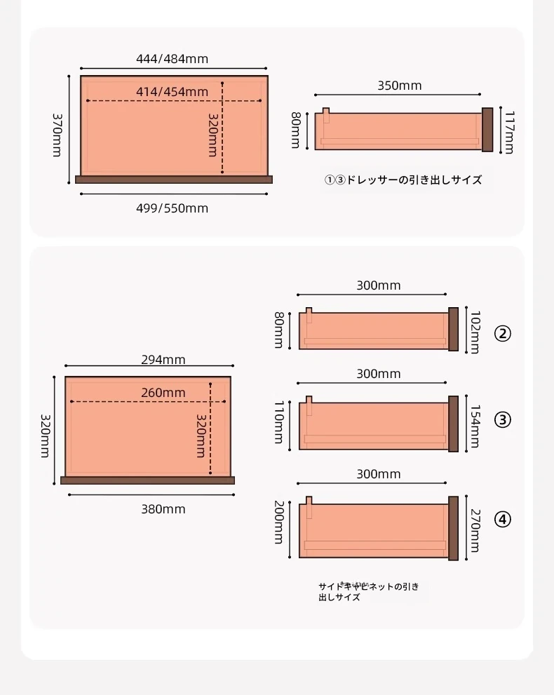 ブラックウォールナット-左右伸縮可能なドレッサー-0.55m