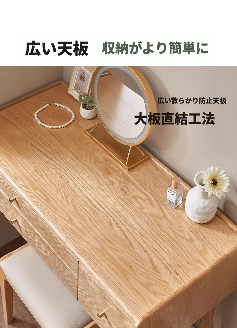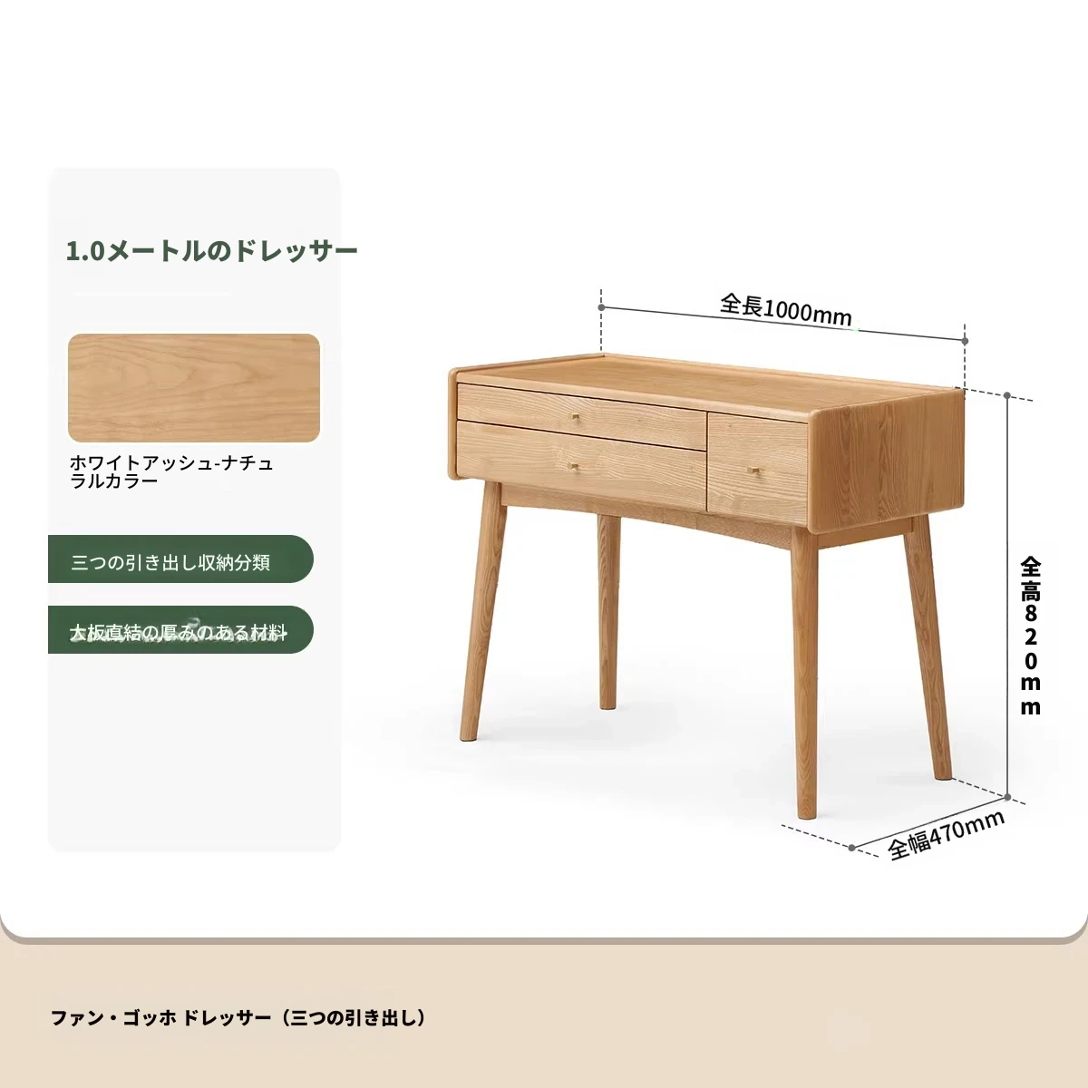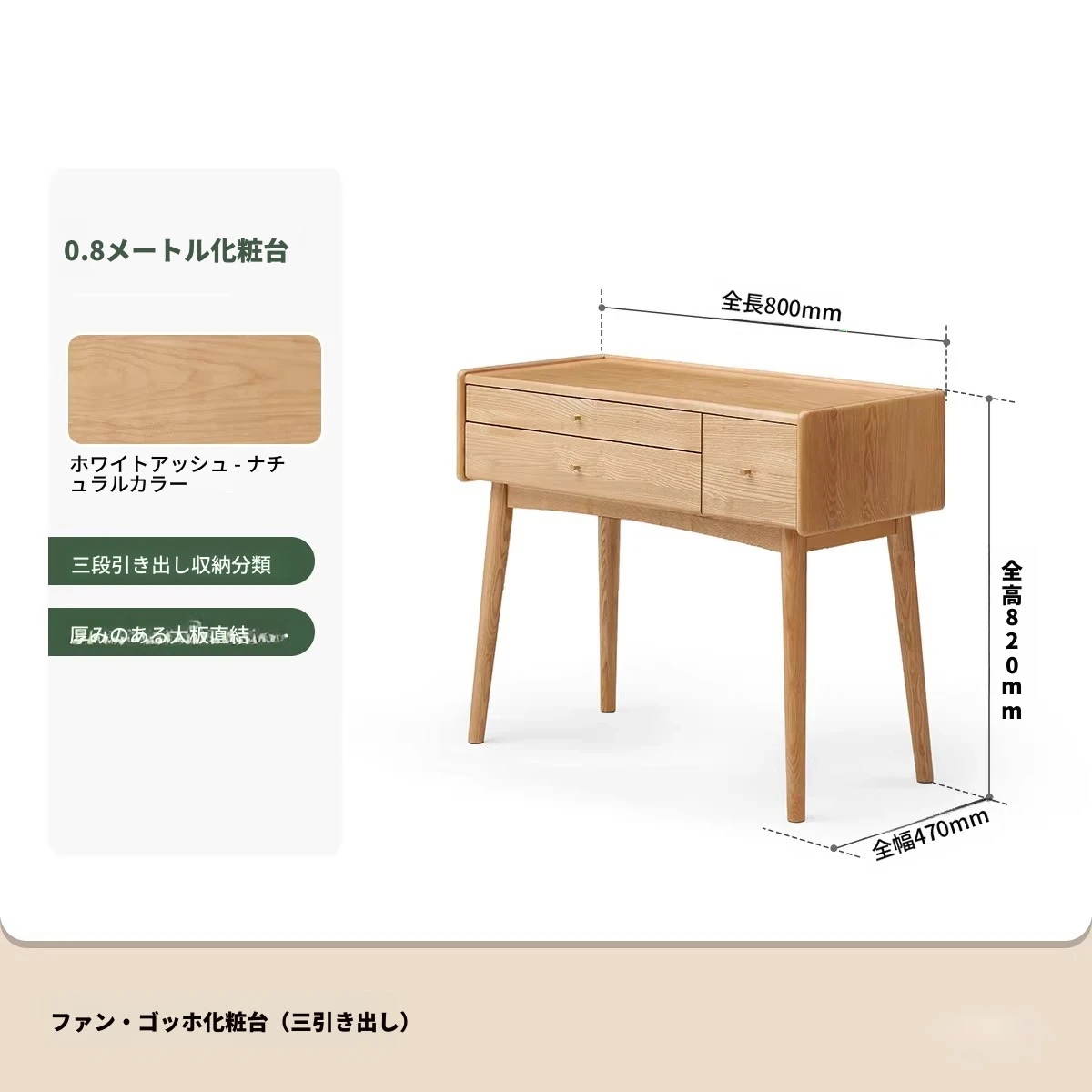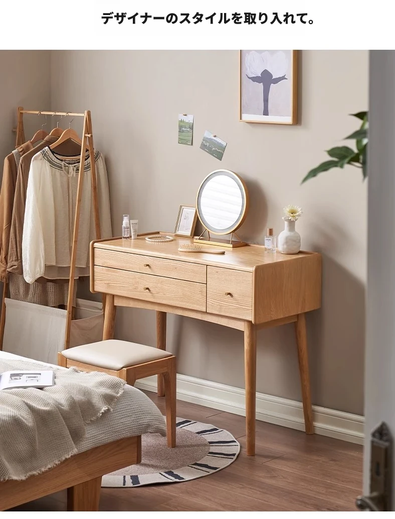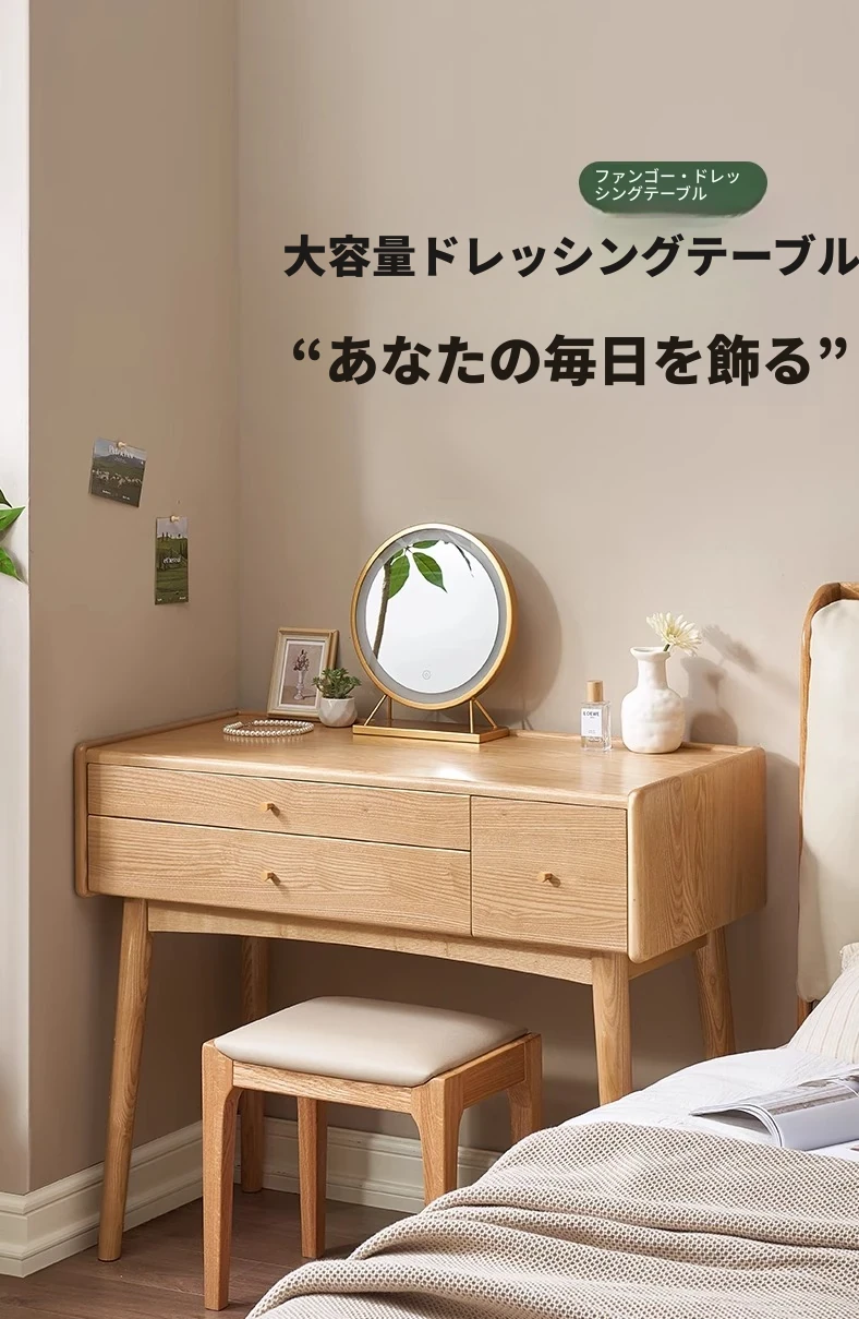オーガニックな無垢材のドレッサー - シンプルなホワイトアッシュ製、収納力抜群のメイクアップテーブル!おしゃれな寝室にぴったりの整理整頓デザイン。あなたのビューティータイムを格上げするアイテムです!