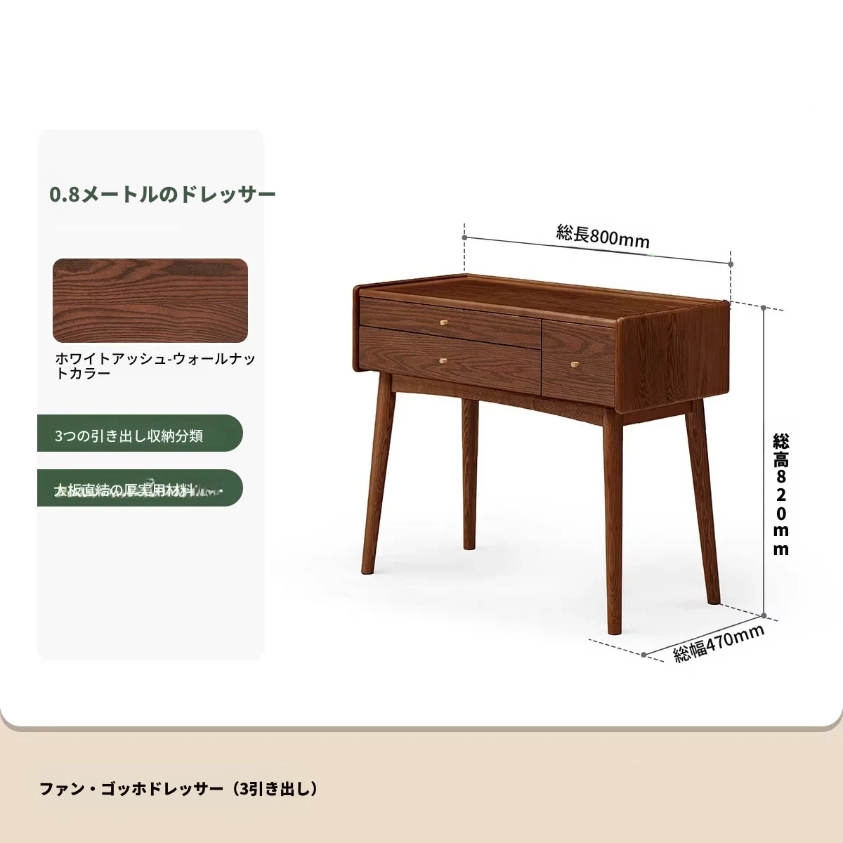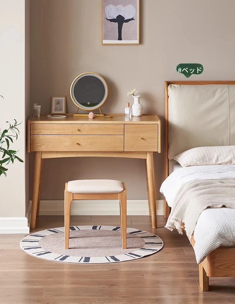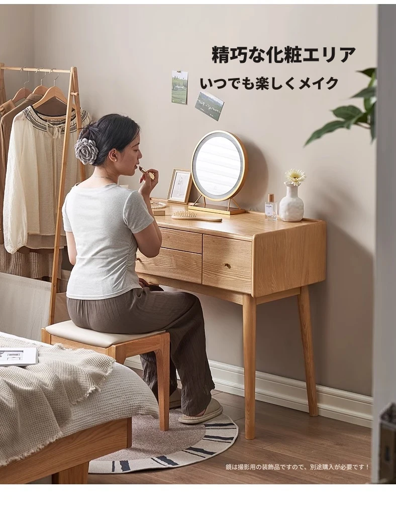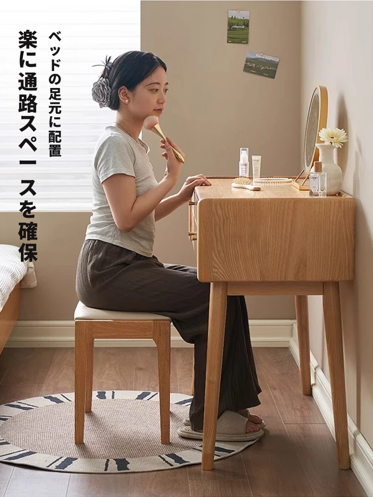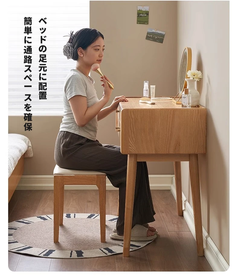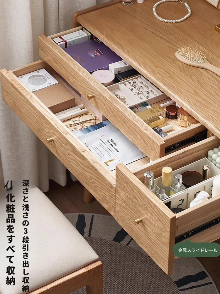 オーガニックな無垢材のドレッサー - シンプルなホワイトアッシュ製、収納力抜群のメイクアップテーブル!おしゃれな寝室にぴったりの整理整頓デザイン。あなたのビューティータイムを格上げするアイテムです!