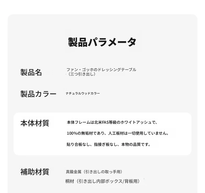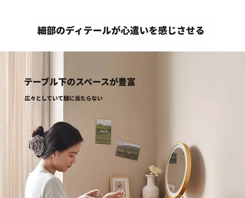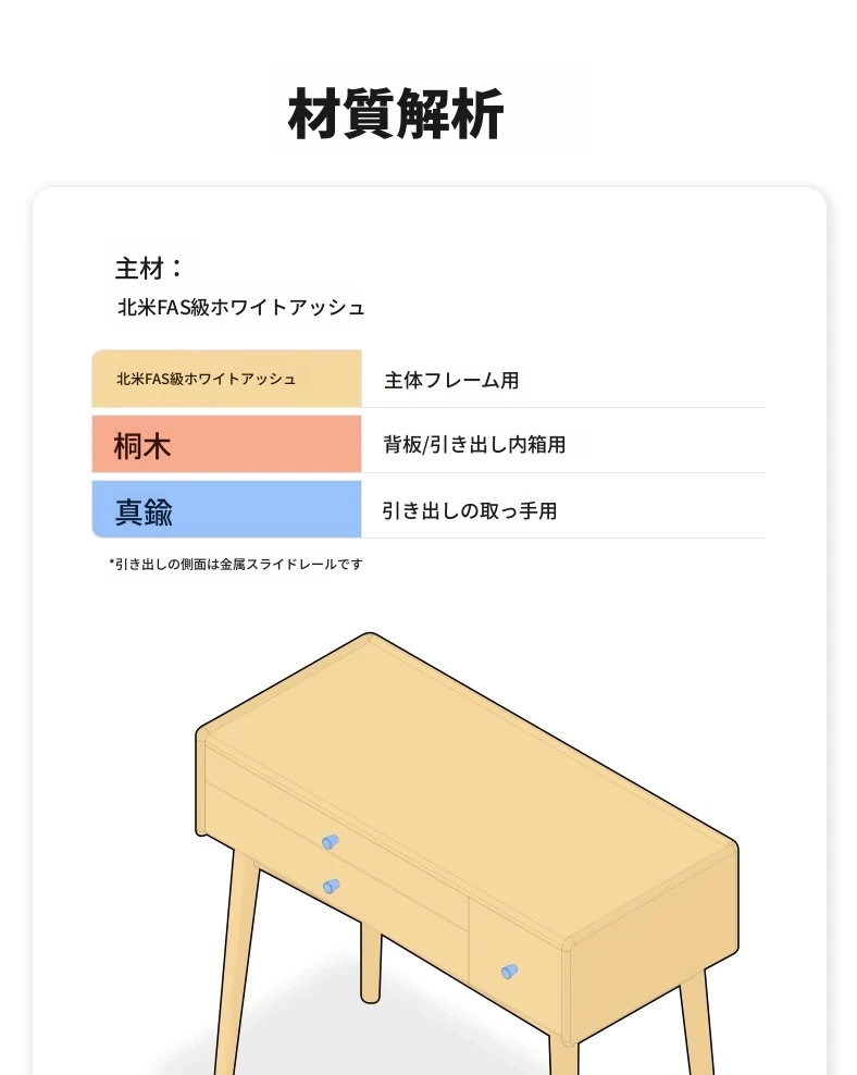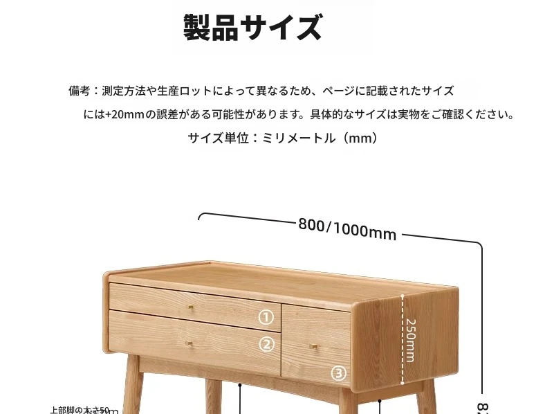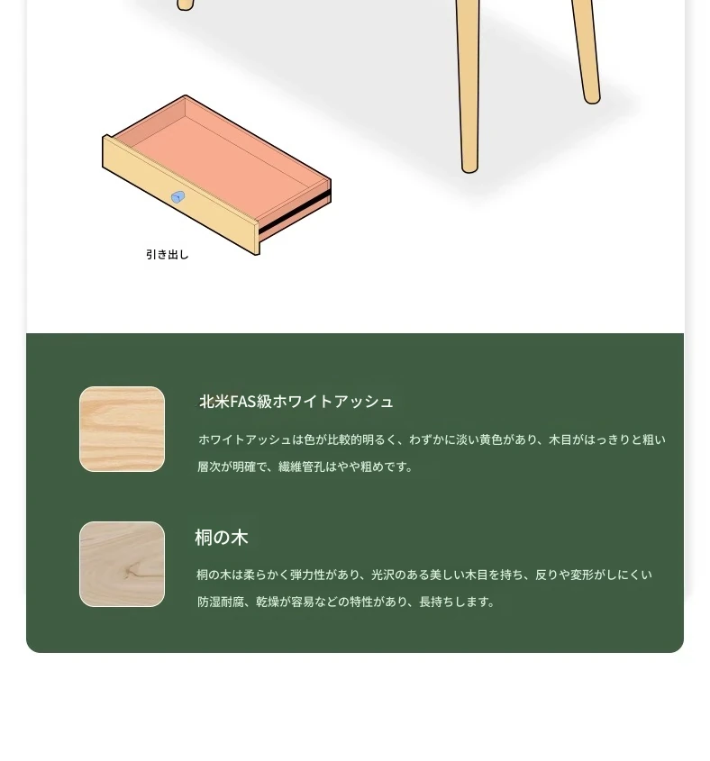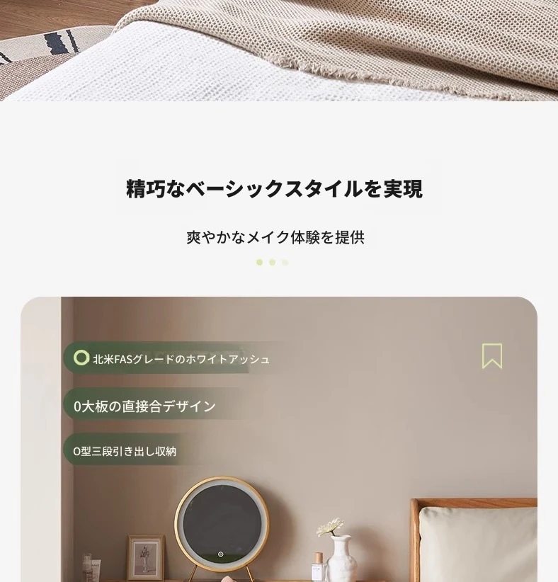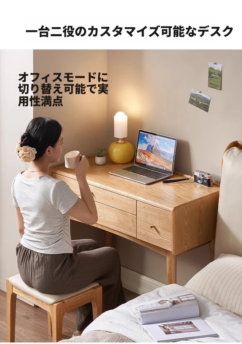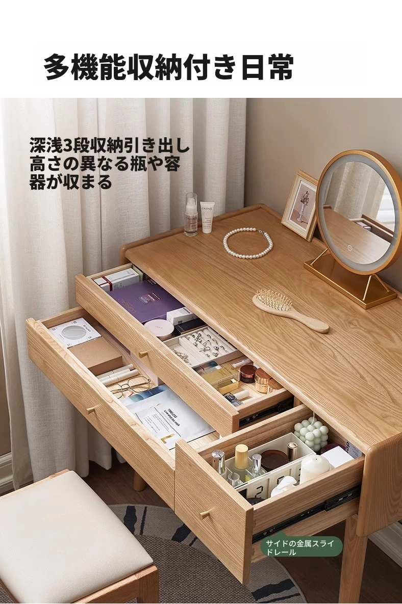オーガニックな無垢材のドレッサー - シンプルなホワイトアッシュ製、収納力抜群のメイクアップテーブル!おしゃれな寝室にぴったりの整理整頓デザイン。あなたのビューティータイムを格上げするアイテムです!