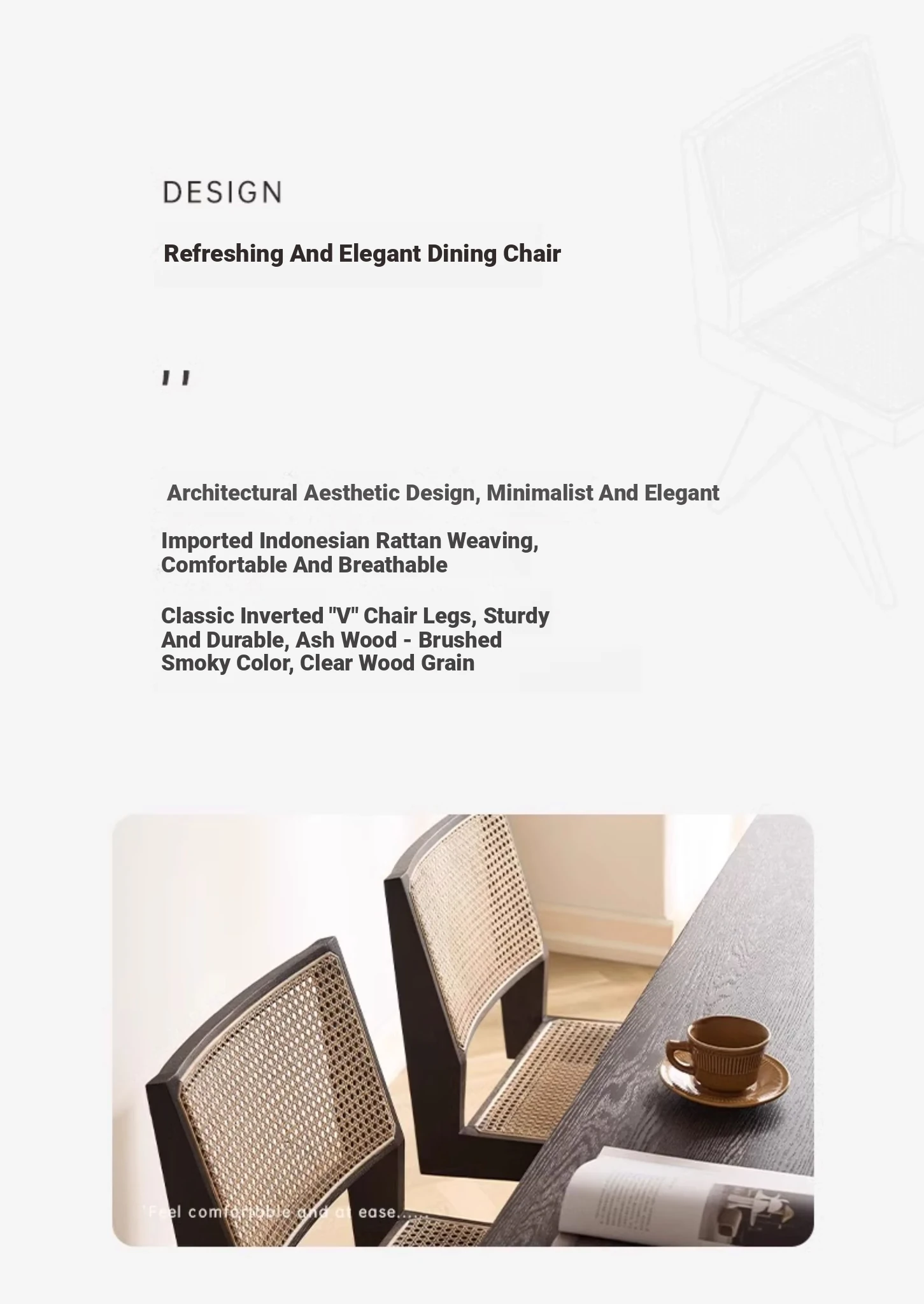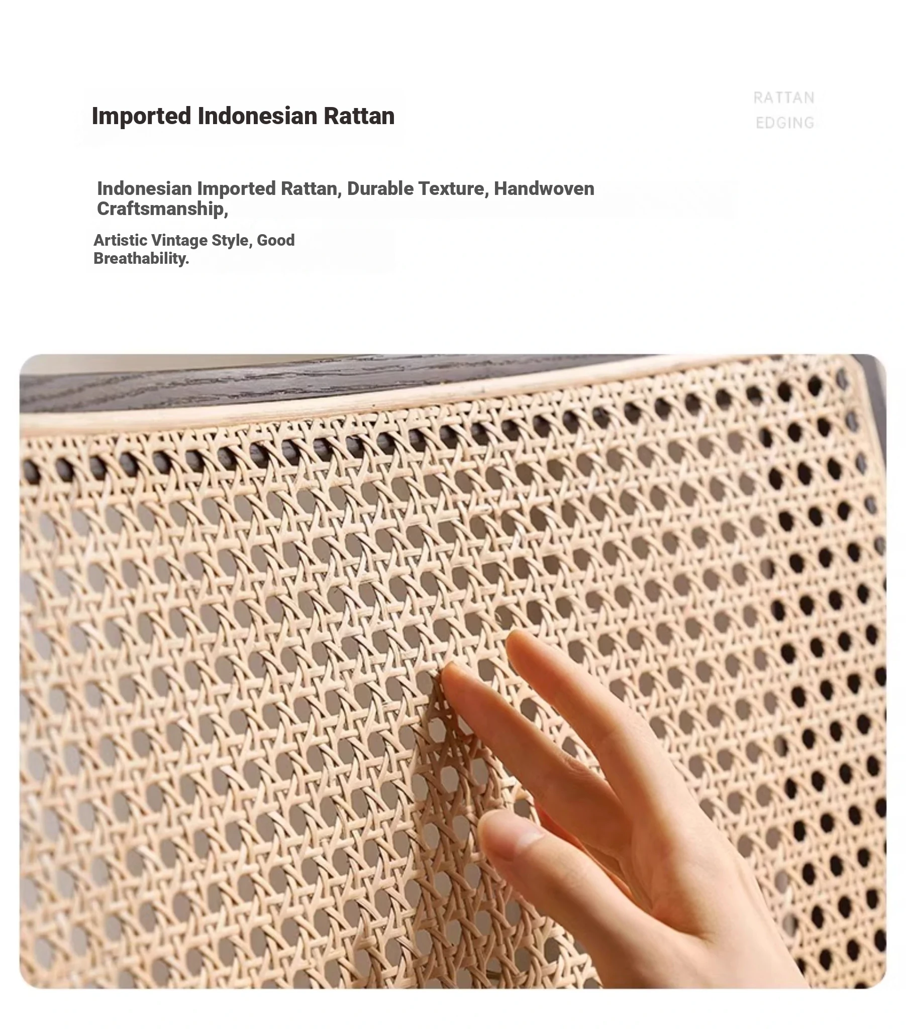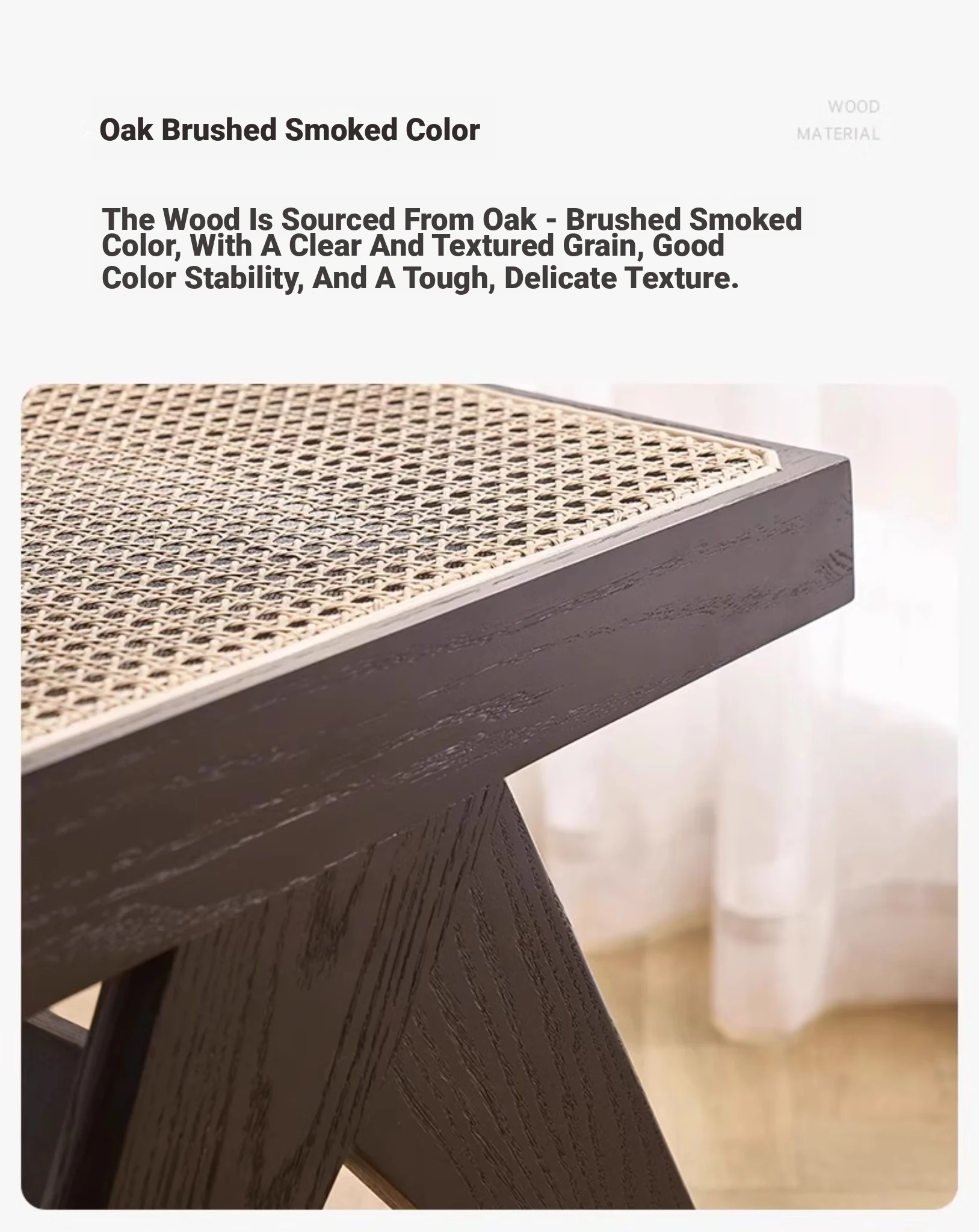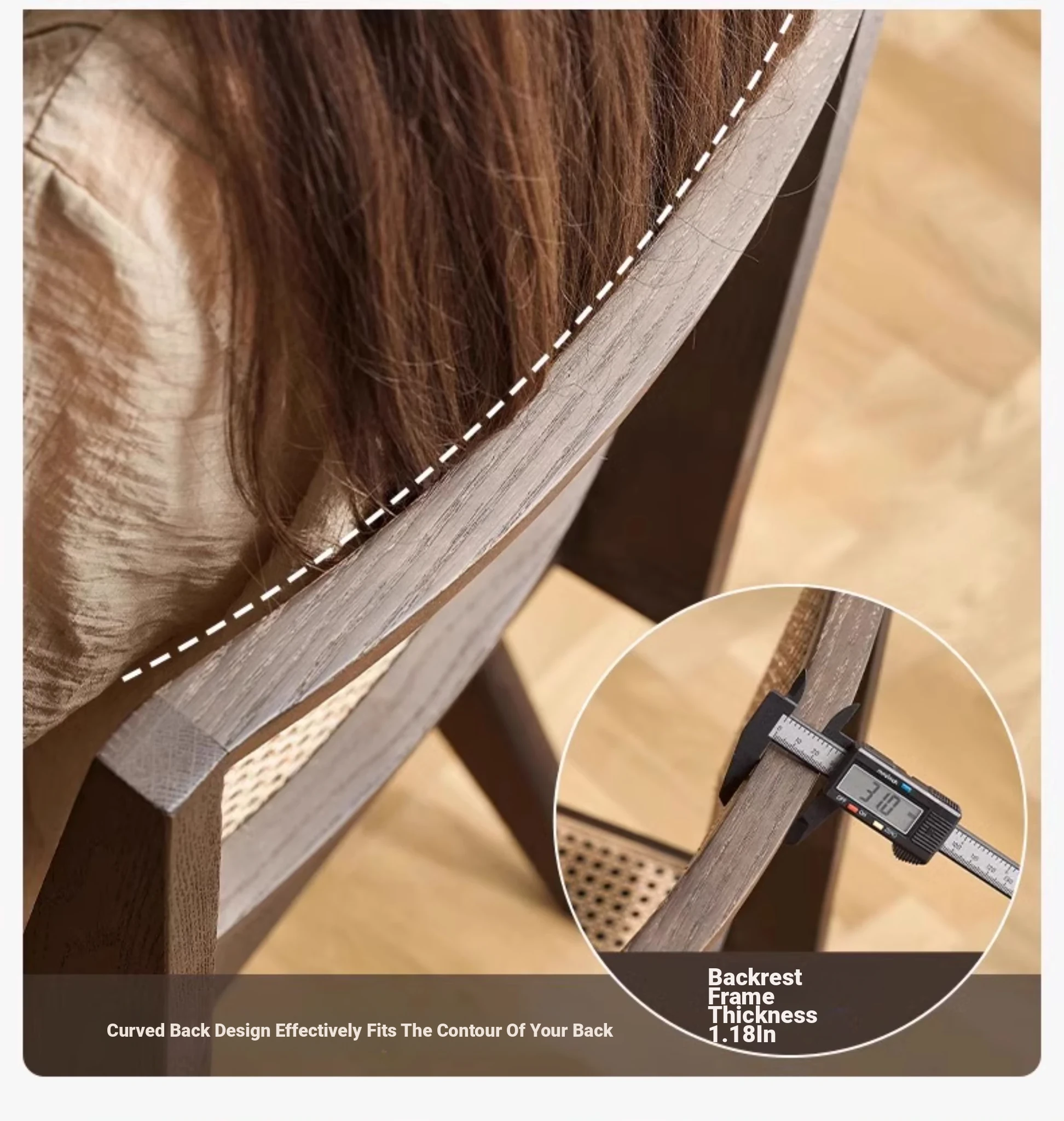Rustic Solid Wood Dining Chair - Chandigarh Oak Rattan Chair in Wabi-Sabi Style, Smoke Grey Color, Comfortable Leisure Chair with Supportive Backrest. Perfect for Elegant Dining Spaces!