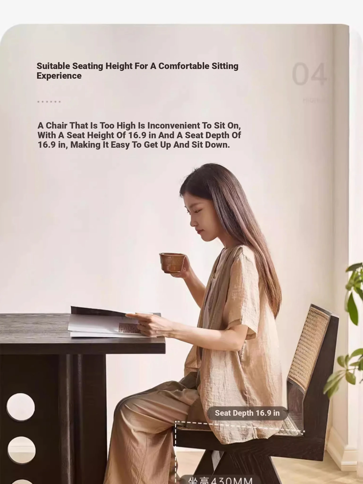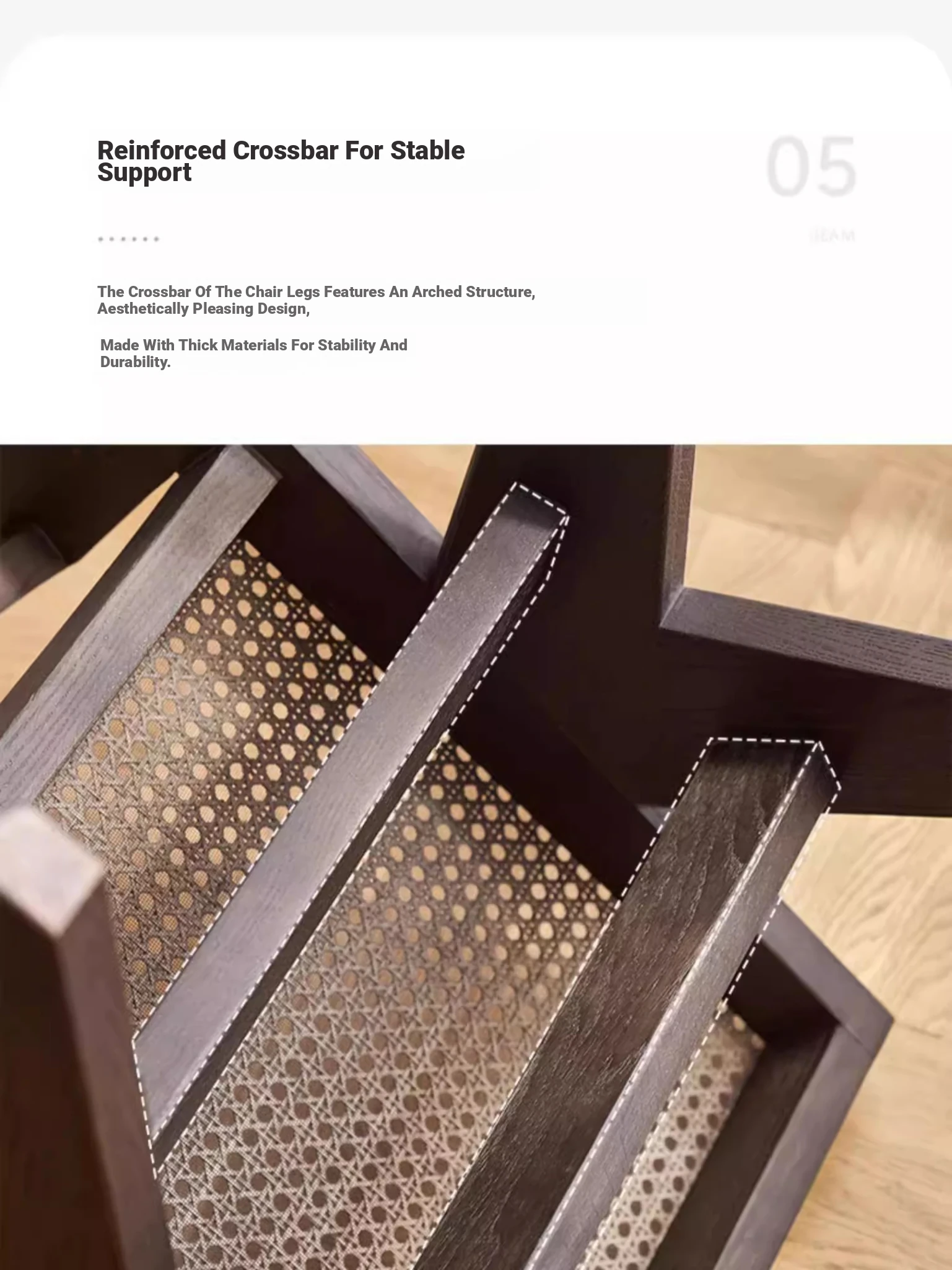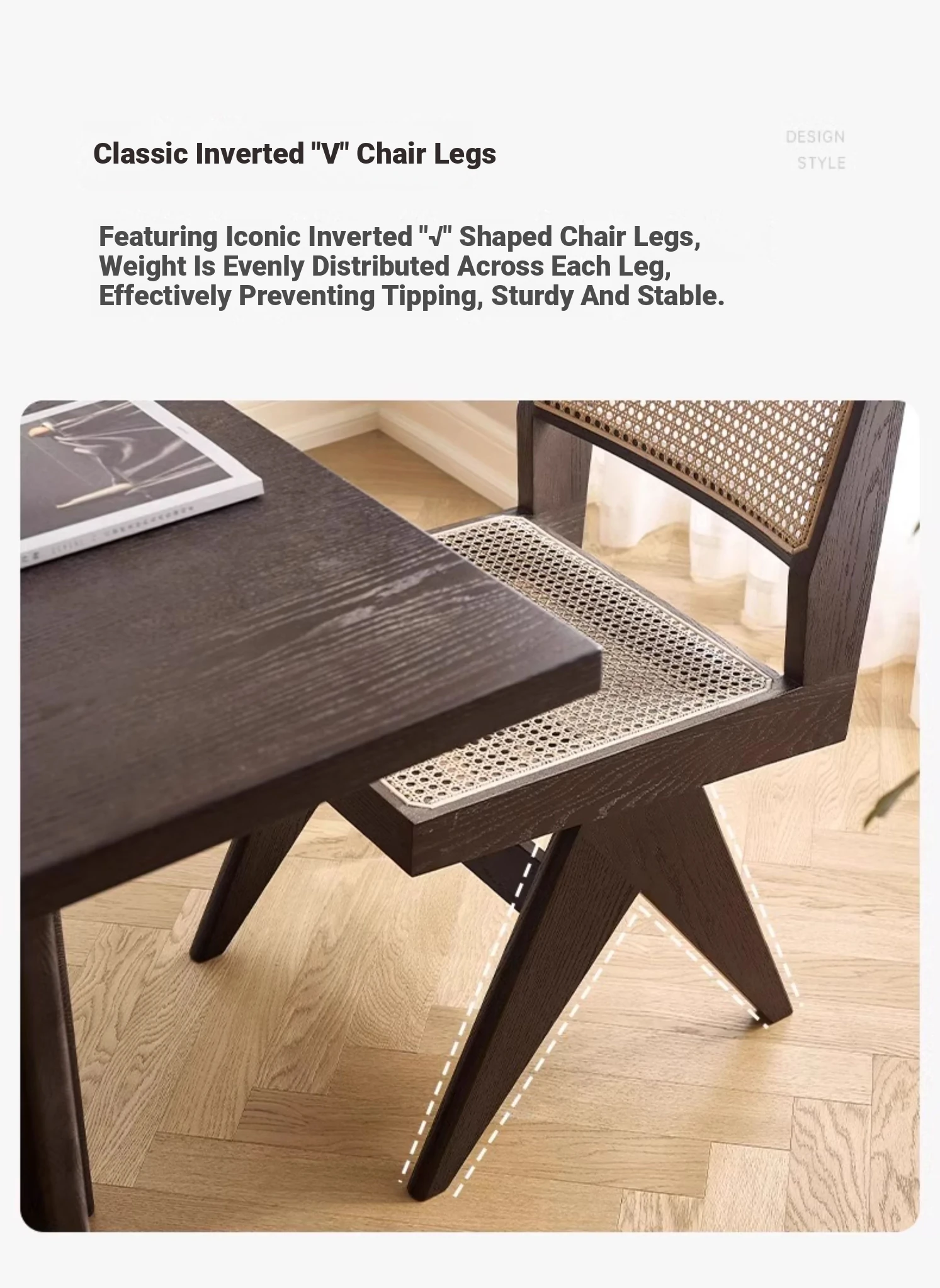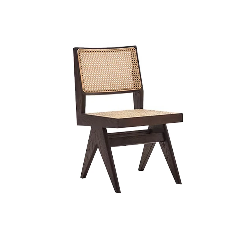 Rustic Solid Wood Dining Chair - Chandigarh Oak Rattan Chair in Wabi-Sabi Style, Smoke Grey Color, Comfortable Leisure Chair with Supportive Backrest. Perfect for Elegant Dining Spaces!