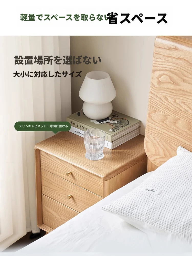 オーガニックウッド全実木ベッドサイドキャビネット|北欧モダンのシンプルデザインで収納力抜群!オーク材使用で耐久性と美しさを兼ね備えた家庭用ナイトテーブル【おしゃれで機能的な寝室の必須アイテム】