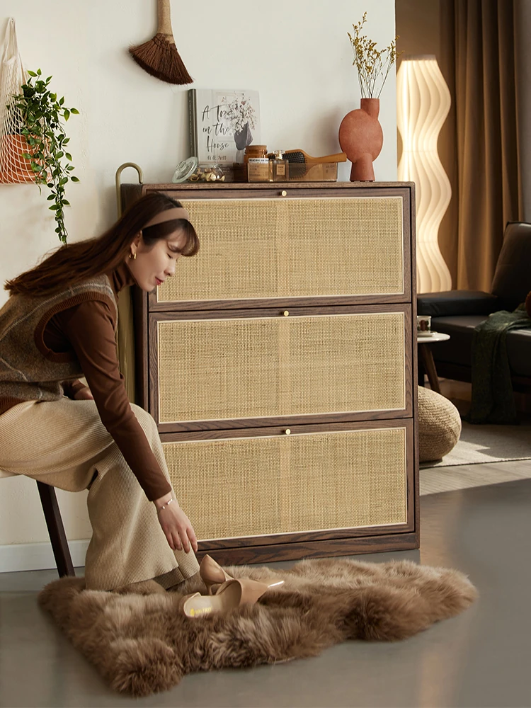シンプルな全木製シューズキャビネット - 小スペースにもぴったりな軽やかなデザイン!オーク材の和風ラフさが魅力の、超スリムなエントランスキャビネット。これでおしゃれな玄関を演出しよう!