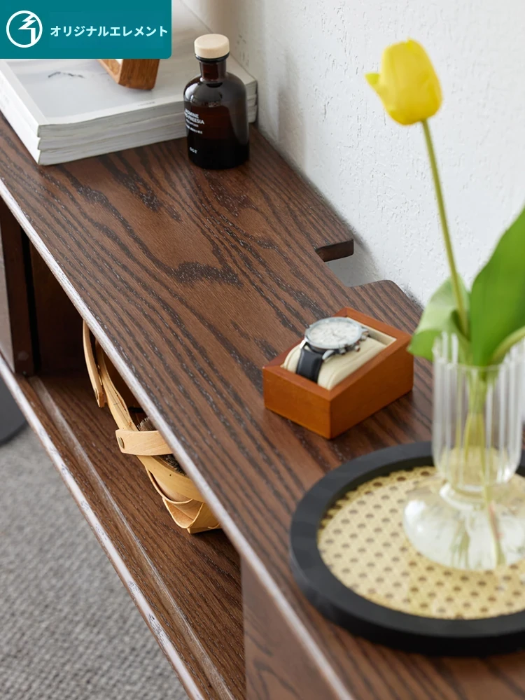 オリジナル無垢材テレビボード 壁掛け式 モダンミニマルデザイン リビング向け オーク材使用 小型住宅に最適な吊り収納!